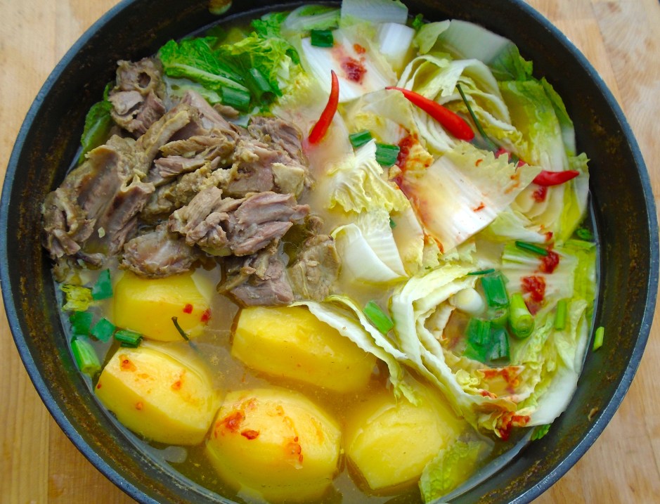 Korean Inspired Beef Stew ← Previous Next → add cabbage, sliced scallions, beef and gochujang (or similar chili paste), check/adjust seasoning