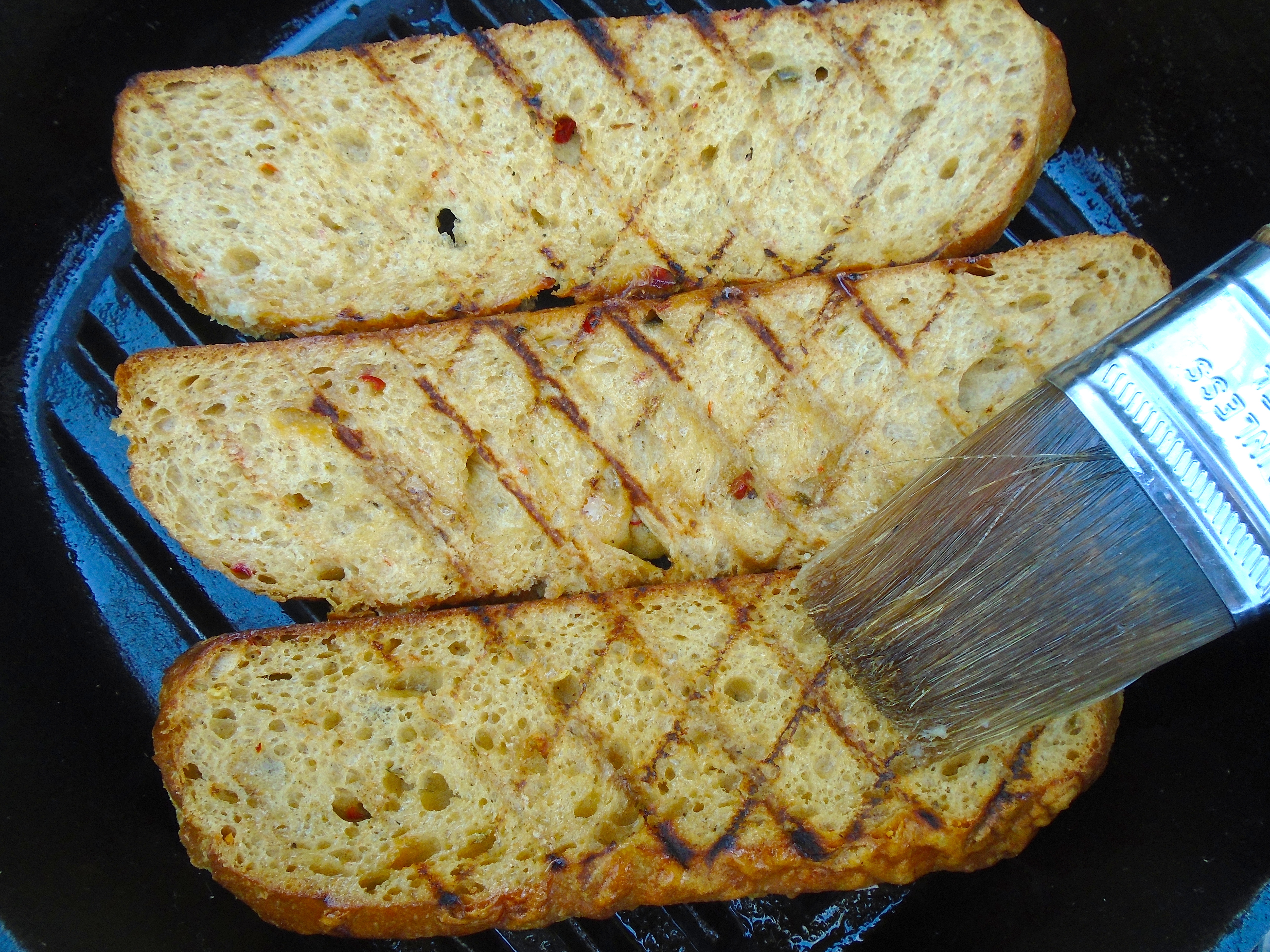 Shrimp & Vegetable Salad In Yogurt/Honey Dressing With Grilled Jalapeno/Garlic Bread ← Previous Next → slice sour dough/jalapeno bread thinly, brush with garlic paste, grill an both sides