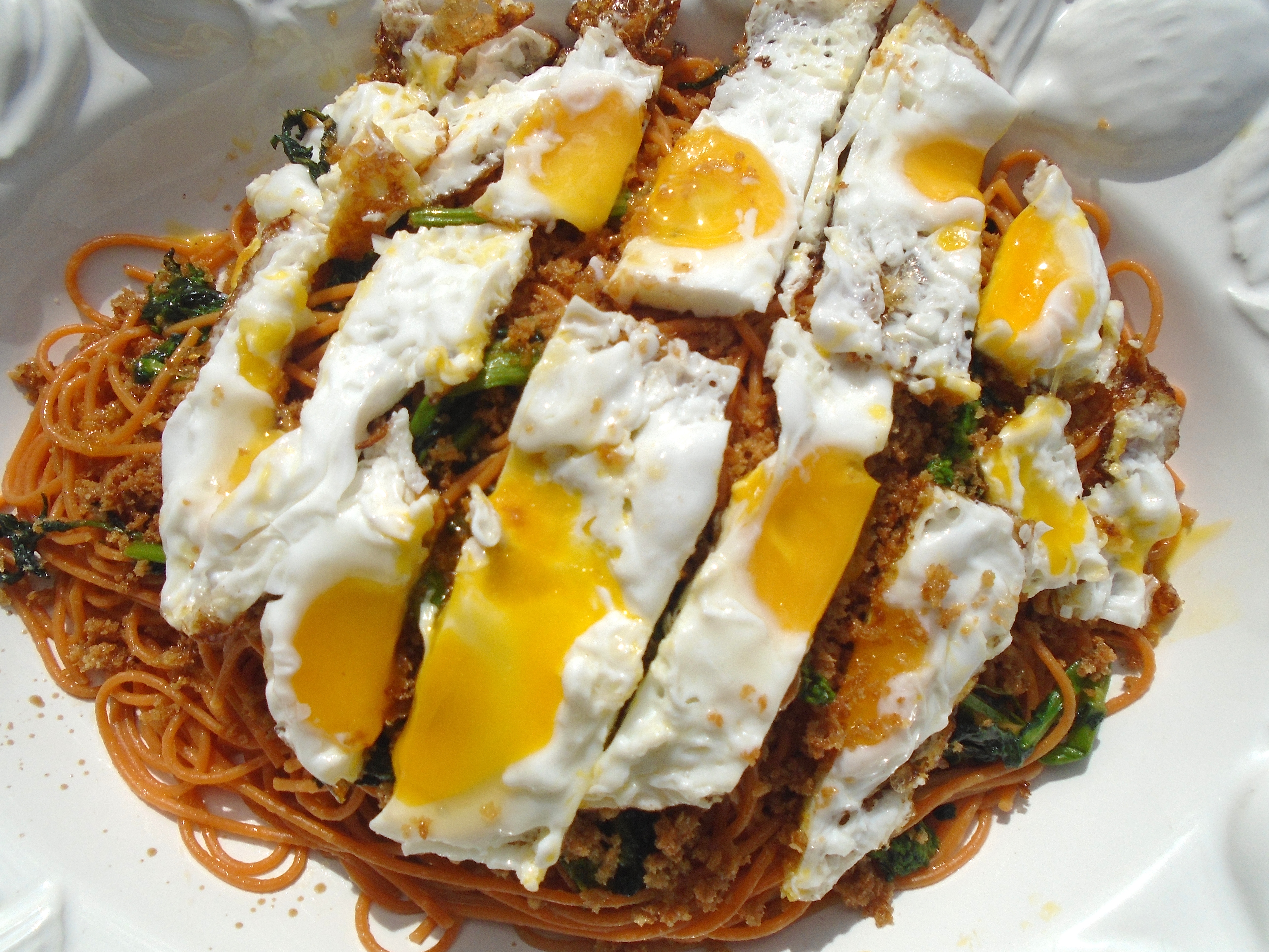 Tomato Spaghetti With Broccolini, Crispy Fried Eggs And Pangrattato ← Previous Next → top pasta with the fried eggs