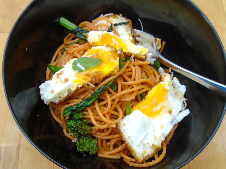 Tomato Spaghetti With Broccolini, Crispy Fried Eggs And Pangrattato ← Previous Next → Tomato Spaghetti With Broccolini, Crispy Fried Eggs And Pangrattato