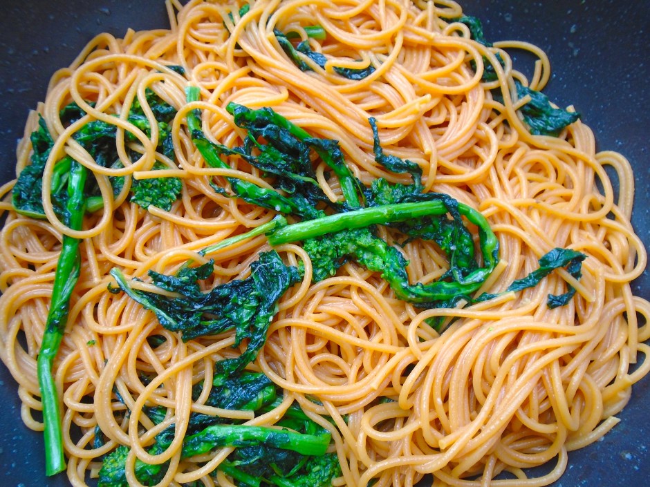 Tomato Spaghetti With Broccolini, Crispy Fried Eggs And Pangrattato ← Previous Next → add tomato spaghetti, season with kosher salt and cayenne pepper, check/adjust seasoning
