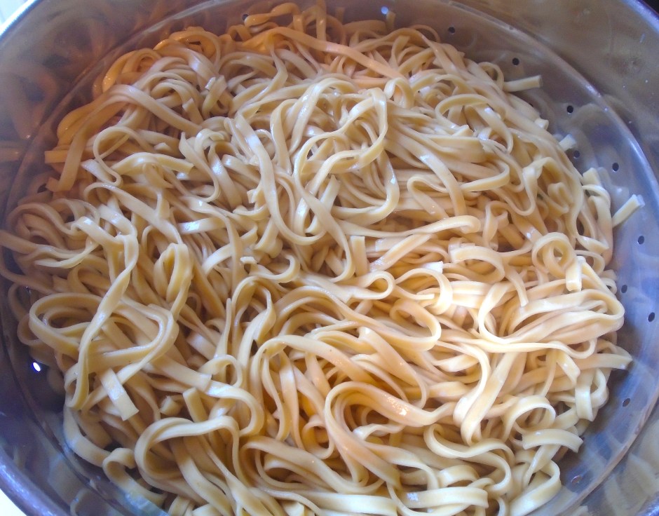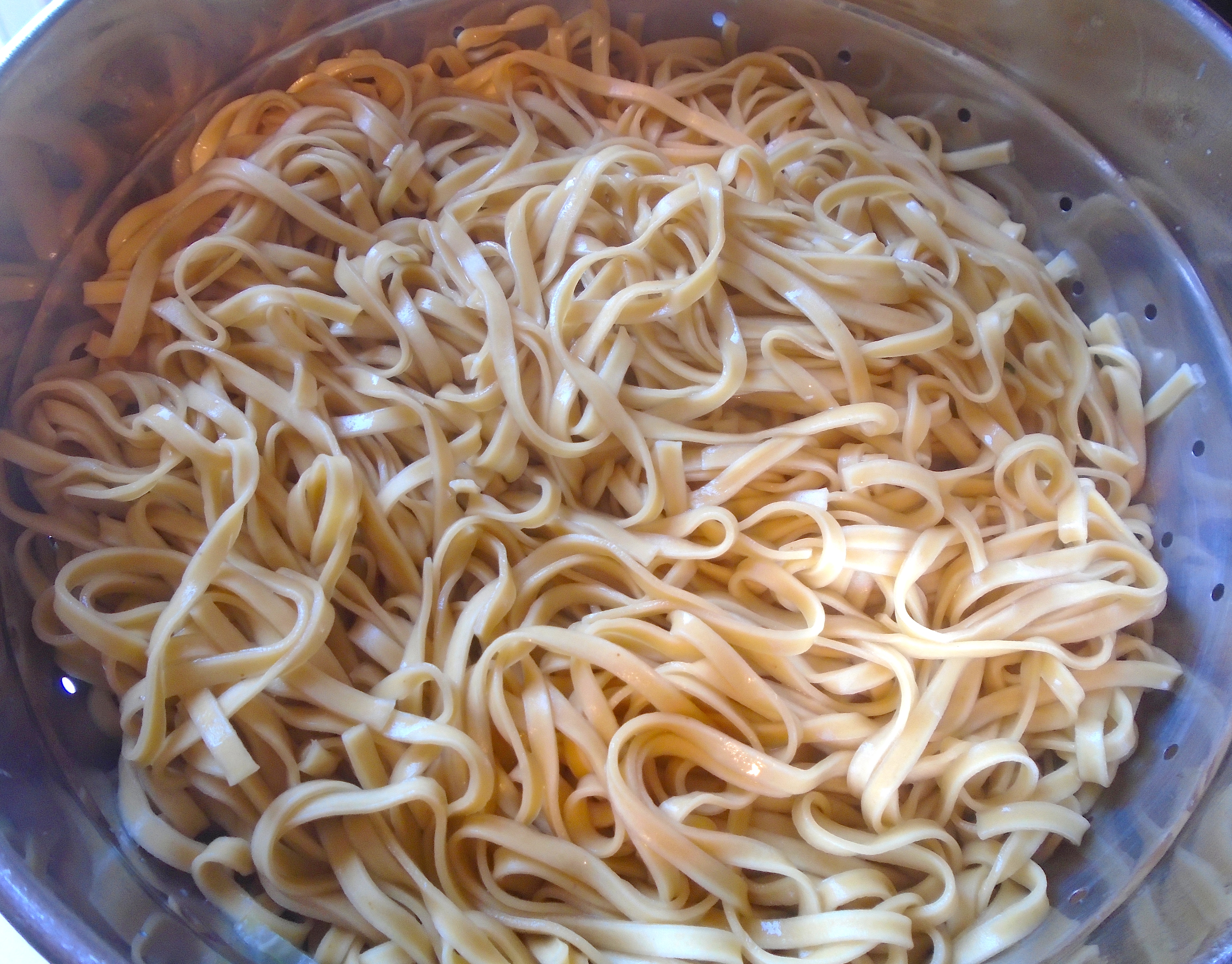 2b ← Previous Next → cook and drain pasta of your choice (I used chinese egg noodles for this one), mix with a bit of sesame oil to prevent them from sticking together, keep warm