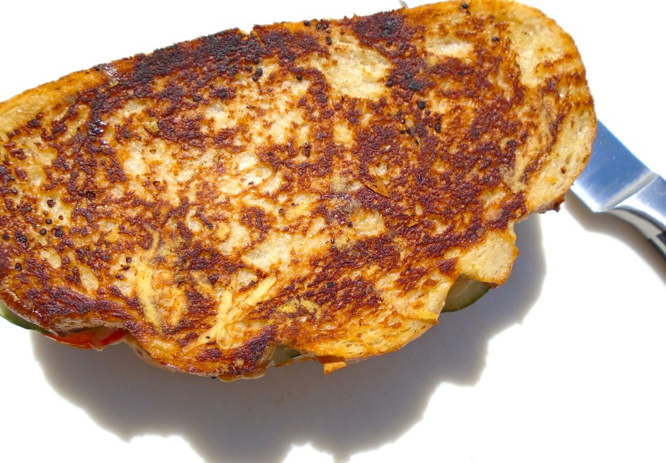 Swiss Melt On Sourdough Bread With Cucumber And Tomato