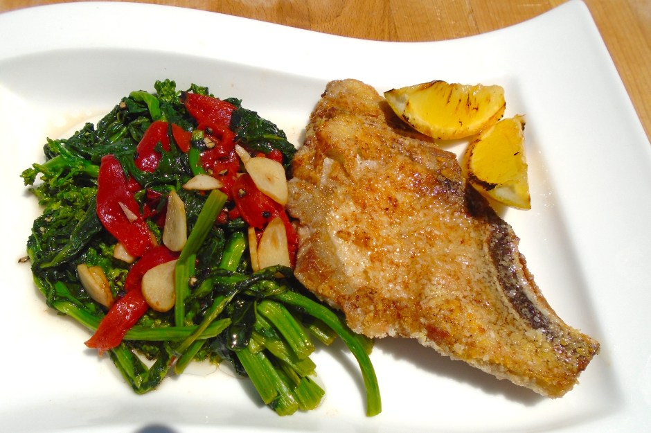 Cheese-Coated Pork Chop With Garlic-Broccolini And Charred Peppers ← Previous Next → Cheese-Coated Pork Chop With Garlic-Broccolini And Charred Peppers