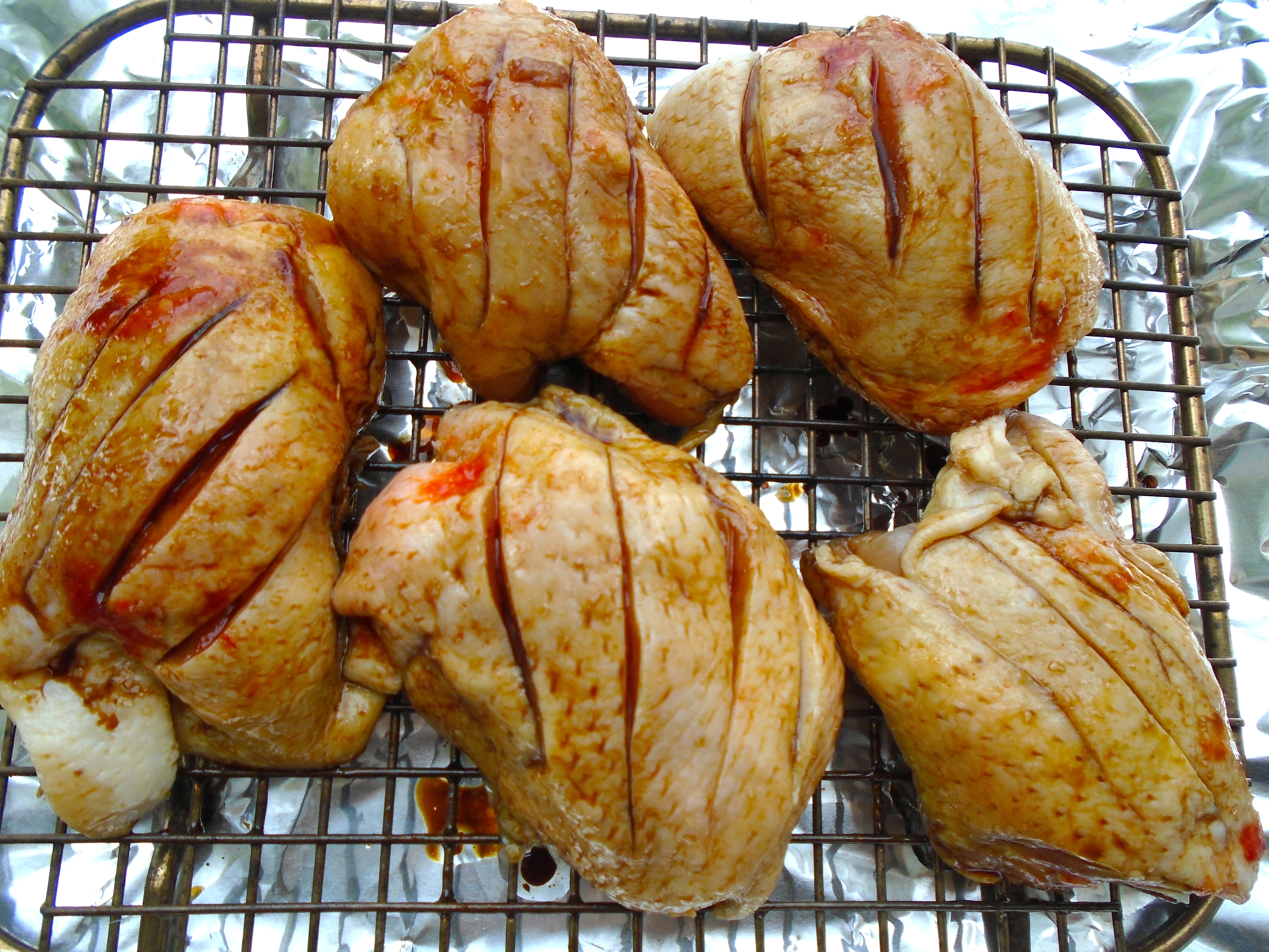 Open-Faced Chicken Sandwich ← Previous Next → place thighs on a wire rack, bake in a 375F oven for 45 minutes or until cooked through