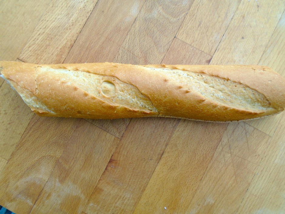 meanwhile, slice 1/2 of a baguette length-wise in half