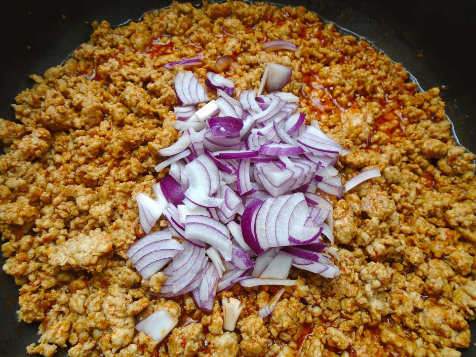 Pork, Cabbage & Chili Noodles ← Previous Next → stir fry in 2 tblsp peanut oil until pork starts to brown, add 1 medium sliced red onion