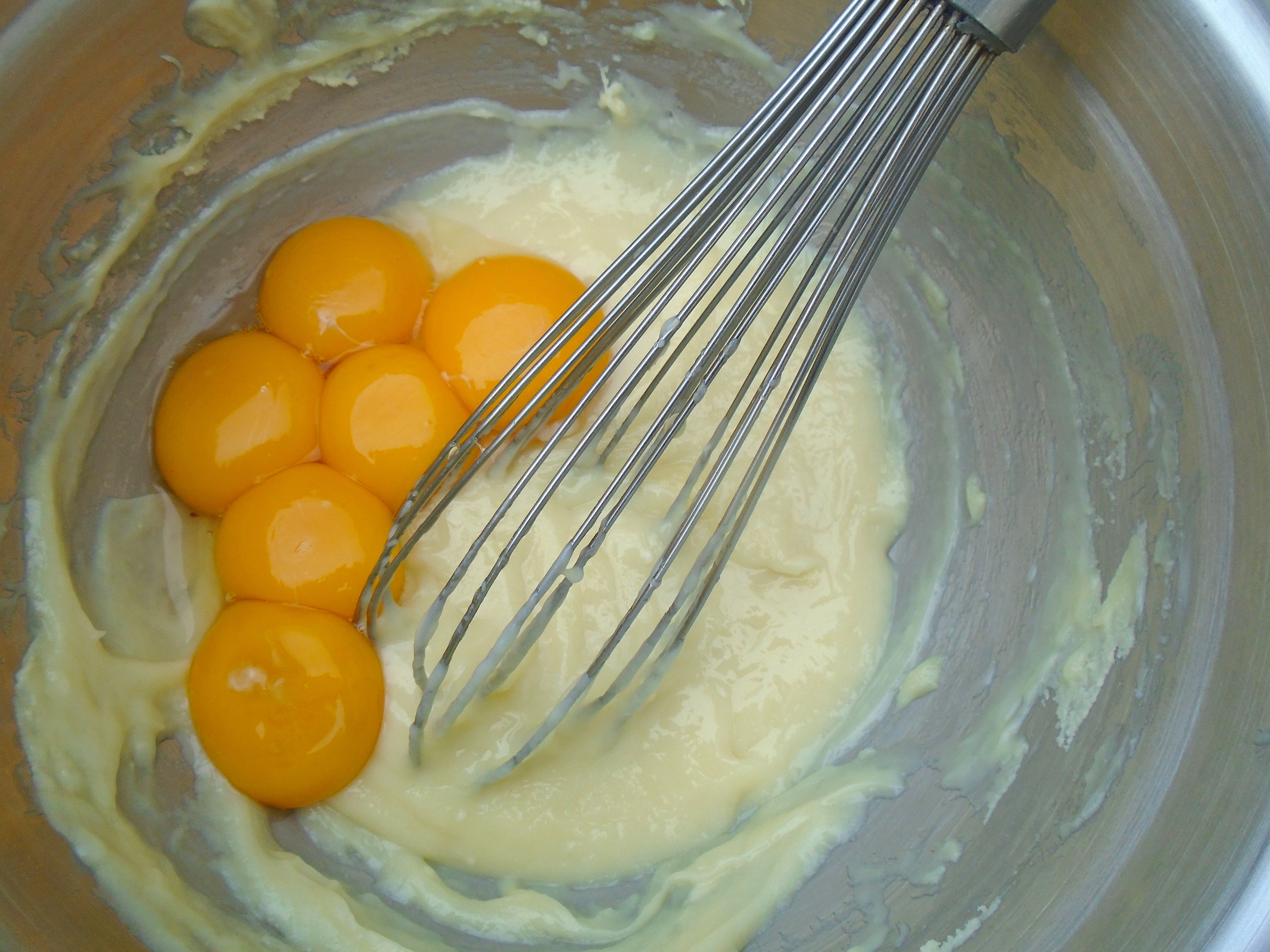 add the egg yolks, incorporate