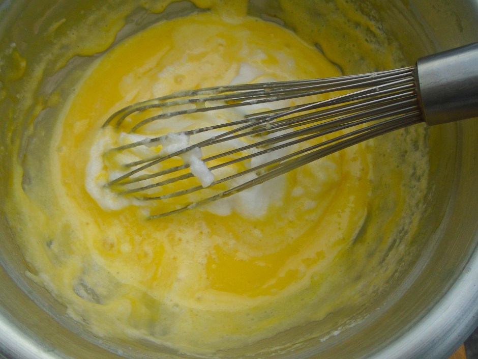 9 ← Previous Next → add 1/4 of the egg-whites to the cream cheese /chocolate/egg yolk mixture, stir until smooth