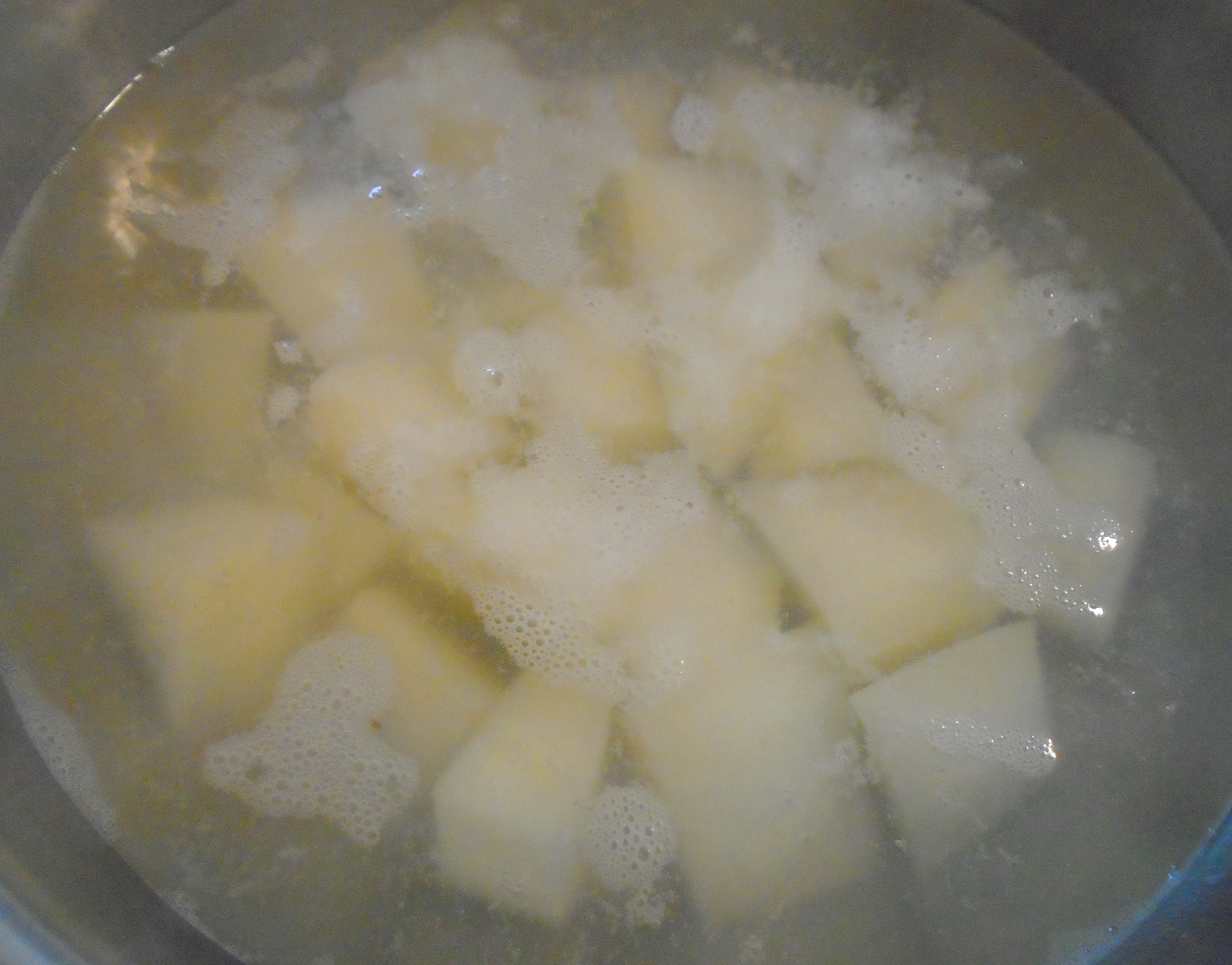 Portuguese Eggs ← Previous Next → peel, dice and simmer 1 large potato in salted water until soft but not falling apart, drain