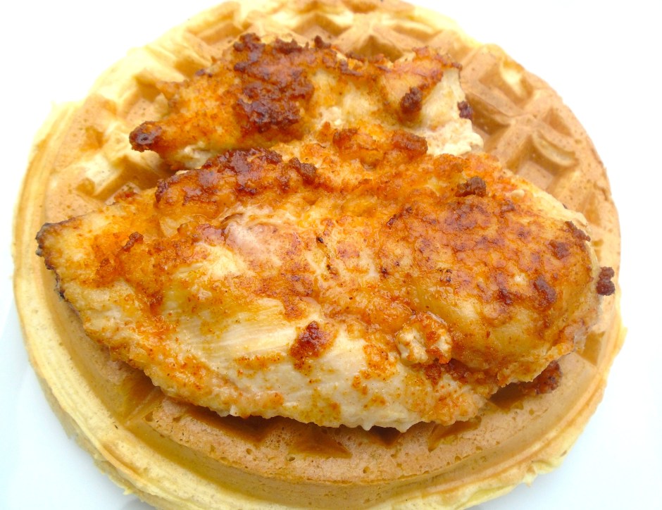 Chicken And Waffle ← Previous Next → top one side of the waffle with a chicken breast, cover the other side of the waffle with smothered onions, sprinkle with more chopped cilantro and a pinch of smoked paprika (paprika optional) ; serves 3