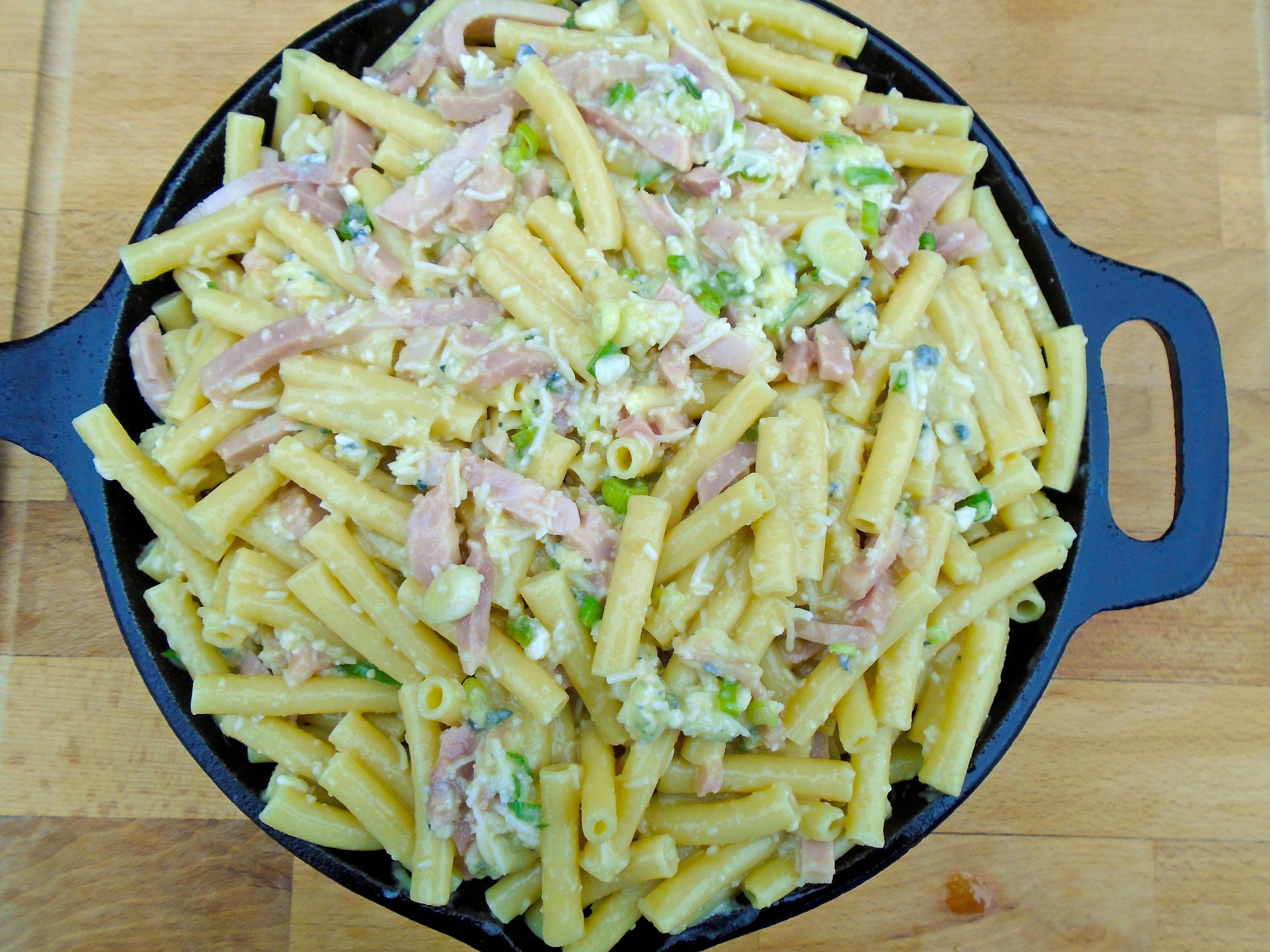 Ziti Pie ← Previous Next → generously butter a baking dish or cast iron pan, add the pasta mix, sprinkle with parmesan cheese and bake in a 375F preheated oven until golden and cooked through; serves 6; serve with green salad and tomato sauce