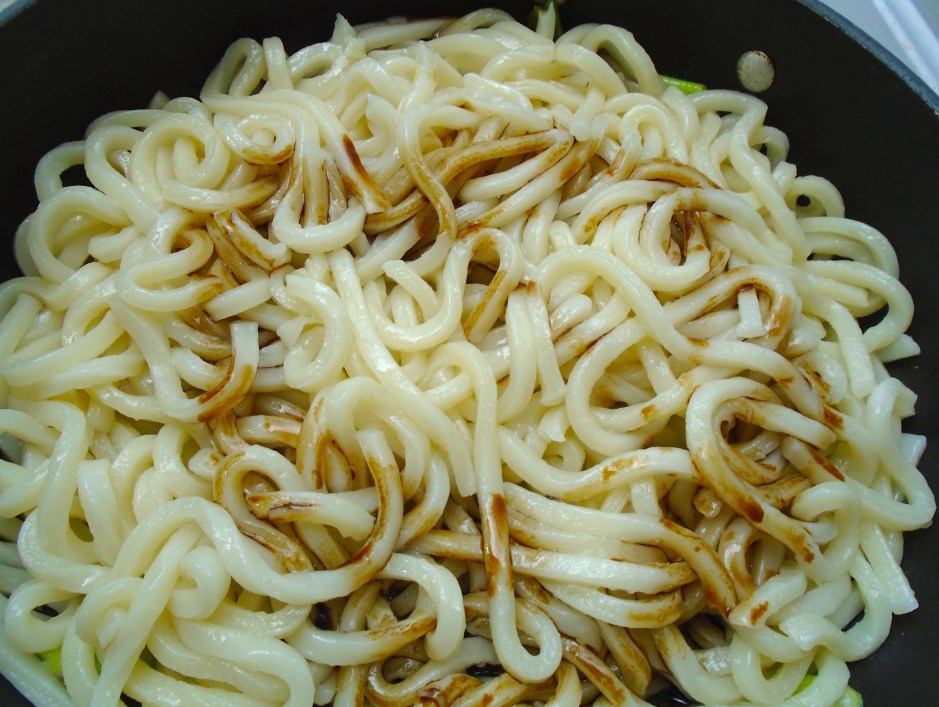 add the udon noodles and 1 cup kecap manis