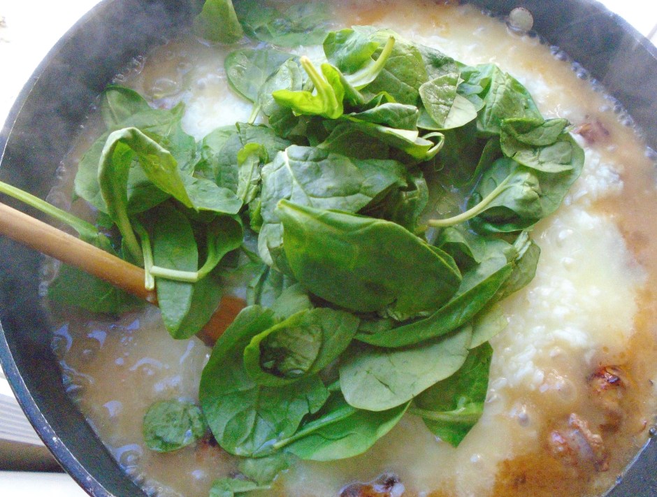Spicy Sausage And Spinach Congee ← Previous Next → add 2 cup tighly packed fresh spinach, remove from heat