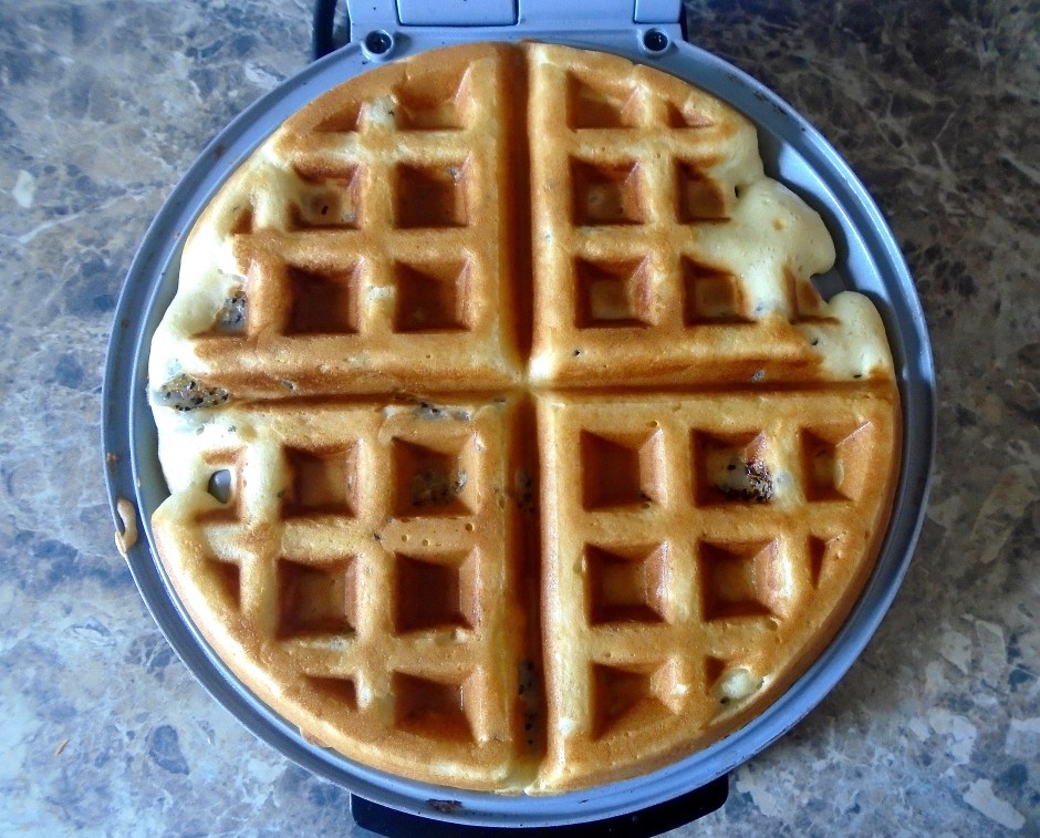 Dragon Waffles With Mangoes In Honey/Vanilla Cream