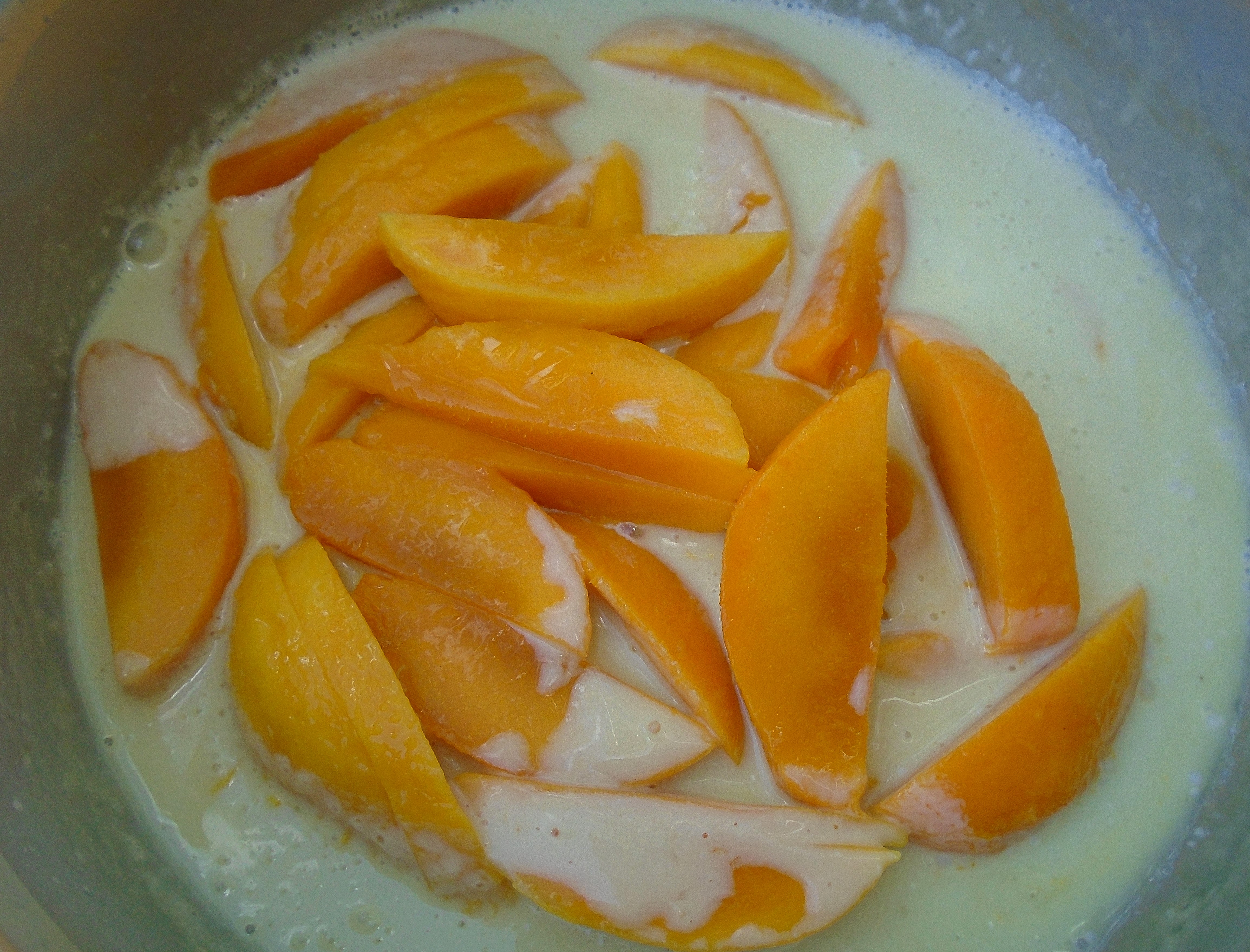 Dragon Waffles With Mangoes In Honey/Vanilla Cream ← Previous Next → peel and slice 3 medium sized mangoes, add to the cream, remove from heat
