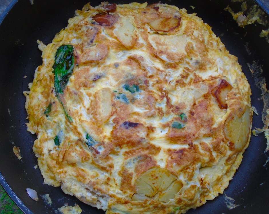 Chicken, Spinach And Potato Frittata ← Previous Next → cook on low heat until eggs have set, flip eggs to other side, cook until lightly browned; serve with gherkins and small salad of greens and tomatoes in honey/yogurt dressing; serves 4