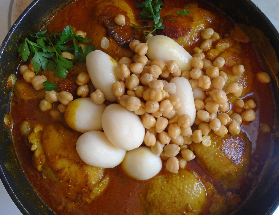 add 8 ea small cooked potatoes and 8 oz cooked garbanzos