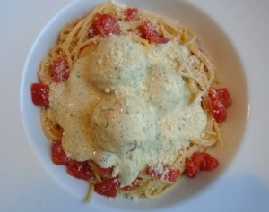 Mix all ingredients well, shape 6 golf ball sized spheres, simmer in lightly salted water until done, about 15 minutes
