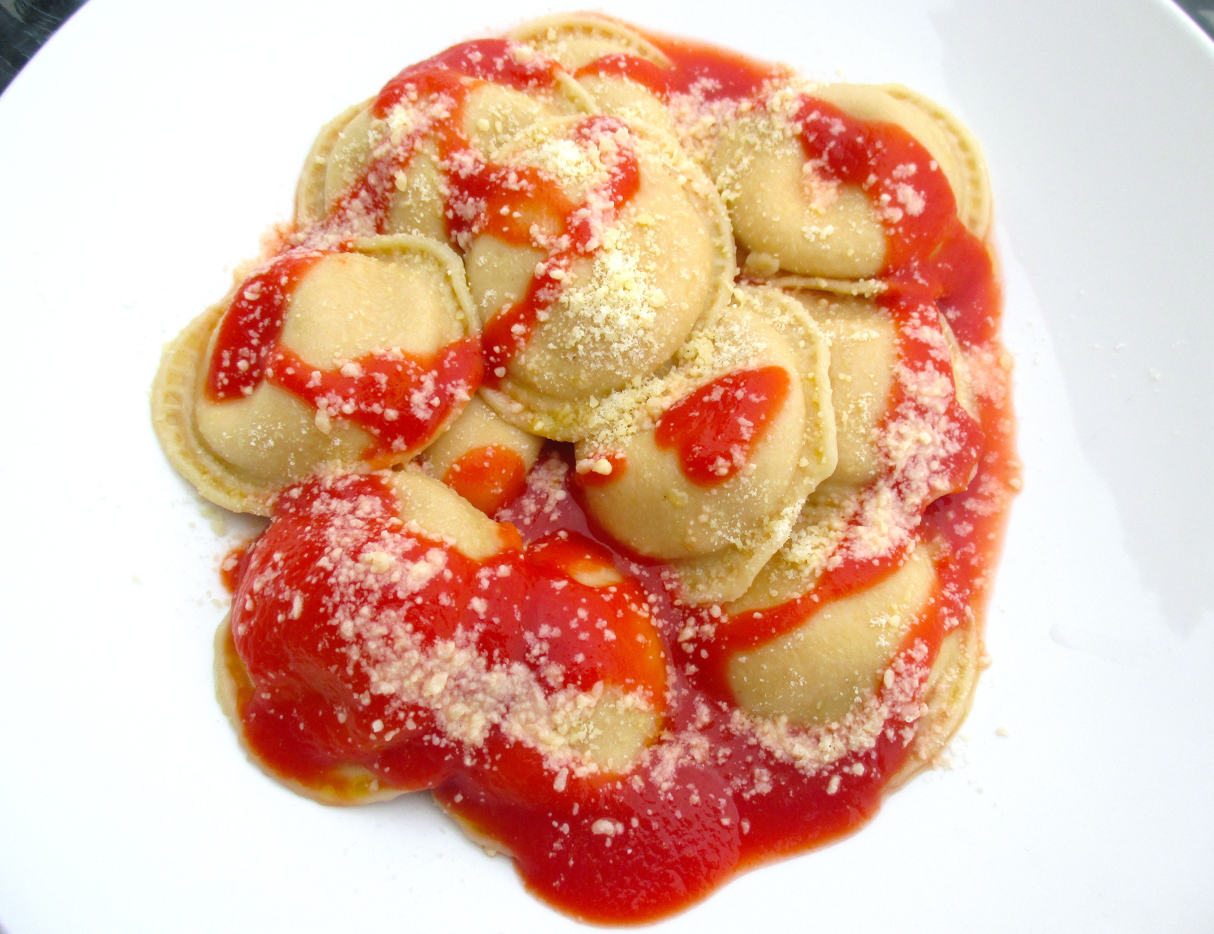 Pumpkin & Ricotta Ravioli In Tomato Sauce, Aji Amarillo And Pangrattato ← Previous Next → drizzle ravioli with more tomato sauce, sprinkle with parmigiano romano