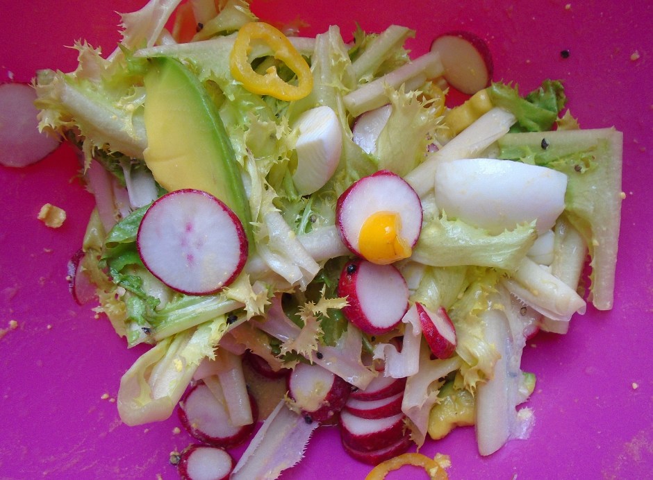 Steak Salad Recipe # 2371 ← Previous Next → whisk 3 tblsp olive oil and chiffonade of 10 basil leaves with 1 tblsp white balsamic vinegar, kosher salt and fresh-ground black pepper to taste, mix with the salad