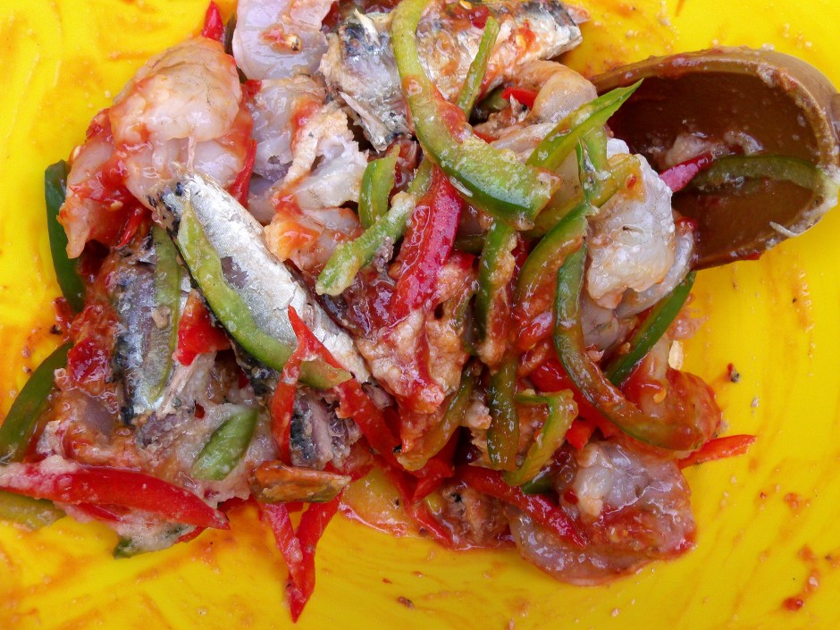 Shrimp And Sardines Pie ← Previous Next → season with 2 tblsp harissa, 1 tblsp garlic paste, 1 tsp oregano, 2 tblsp EVO, a dash of maggi seasoning, kosher salt to taste, mix carefully without breaking-up the sardines