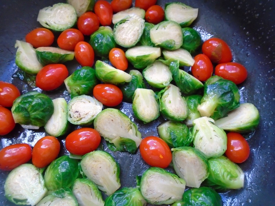 Gnocchi, Brussel Sprouts And Grape Tpmatoes “Almondine” ← Previous Next → add the brussel sprouts and 1 cup grape tomatoes and 1/2 tblsp garlic paste, saute until heated through