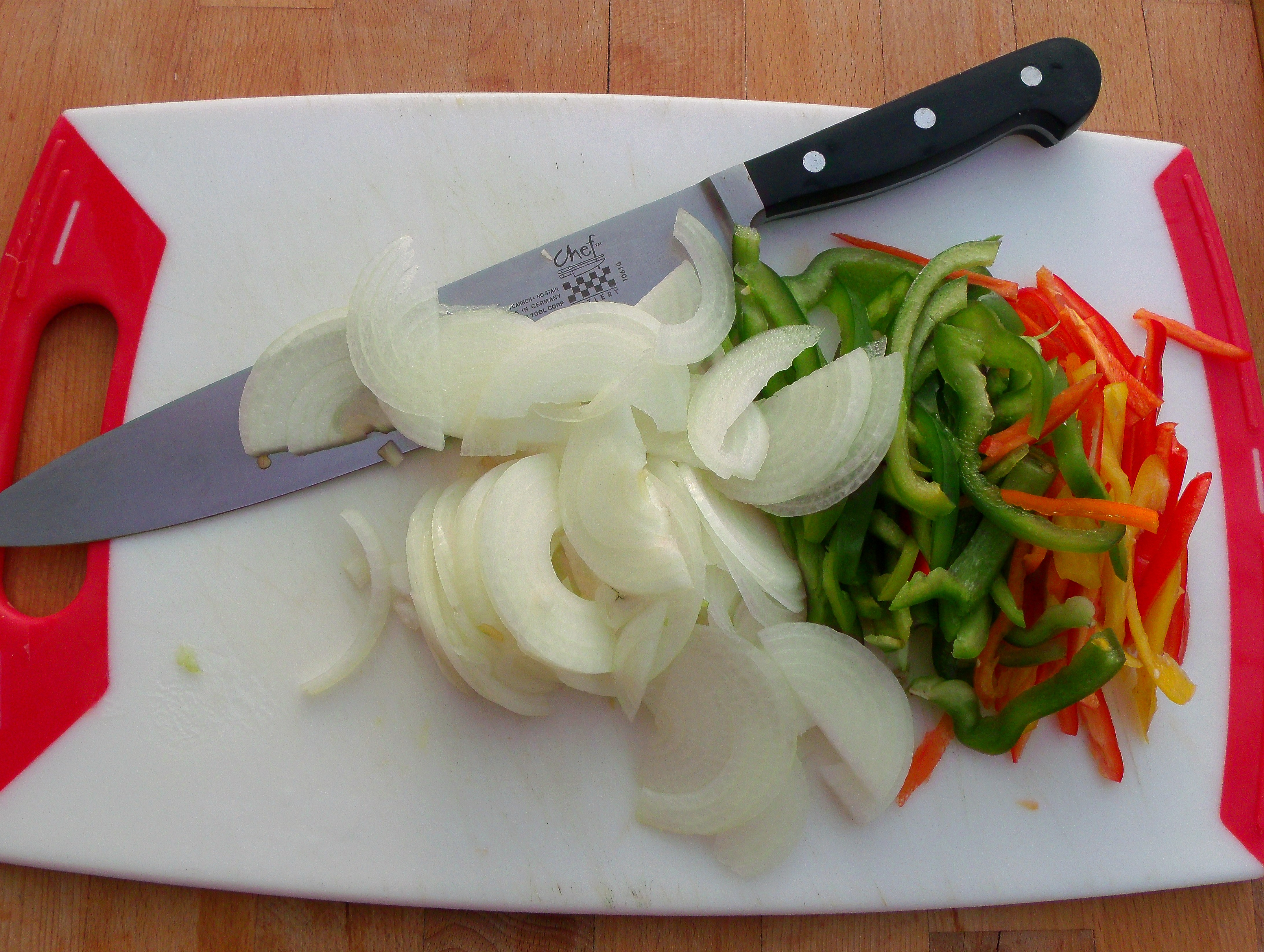 Sautierte Rinderfiletspitzen In Paprikarahm Mit Knoblauch/Kartoffel-Purree…..(Trust Me, It’s Good Stuff) ← Previous Next → cut 1 small red pepper, 1 small green pepper and i medium size white onion into julienne, set aside
