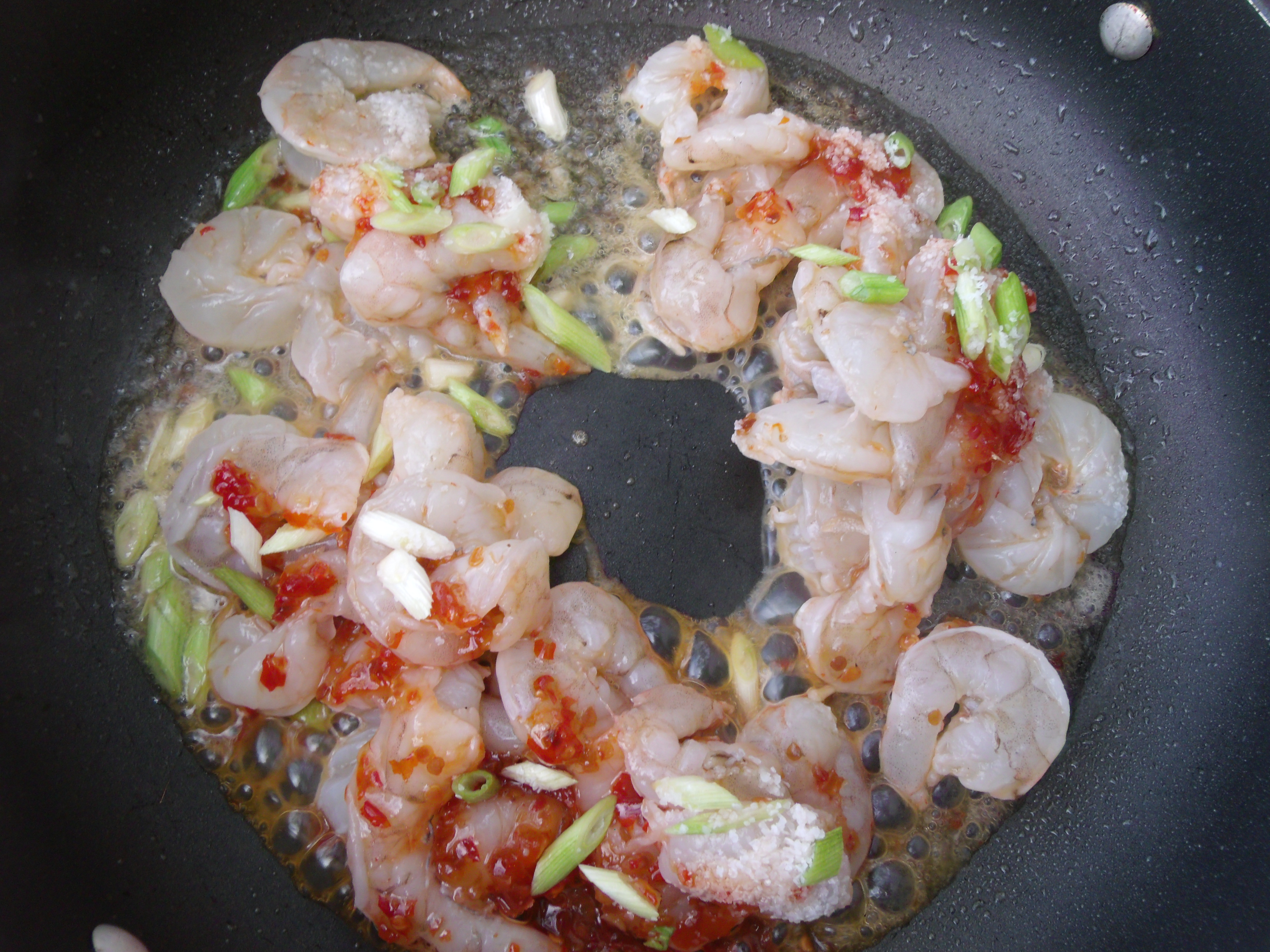 Salad Of Chili Shrimp, Endive, Pear And Sun-Dried Tomato (Or Is It A Taco ?) ← Previous Next → saute the shrimp and scallions in the garlic oil