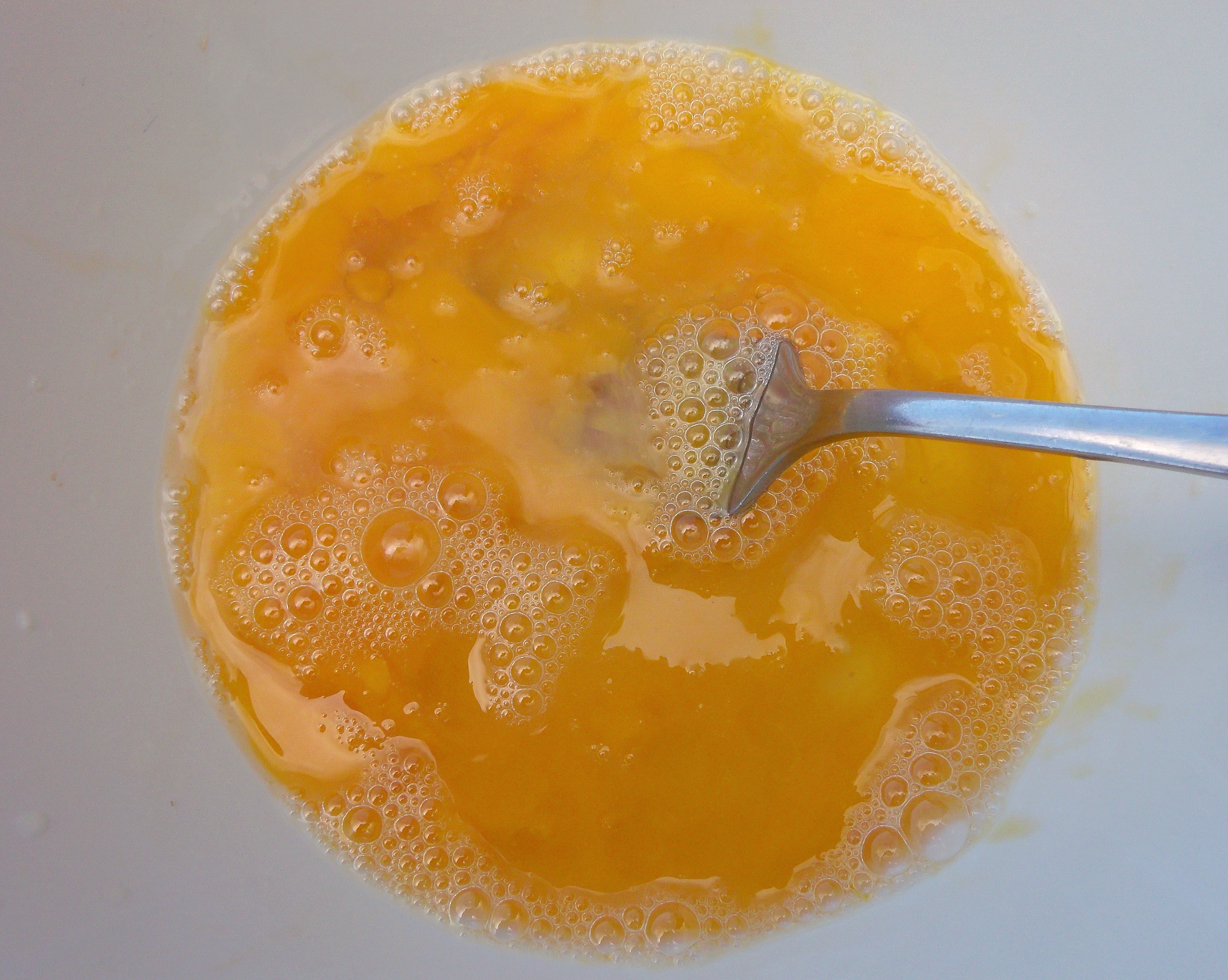 Curried Pasta With Shrimp, Mushrooms, Veggies And Egg ← Previous Next → whisk 4 ea whole eggs, season with kosher salt and cayenne pepper