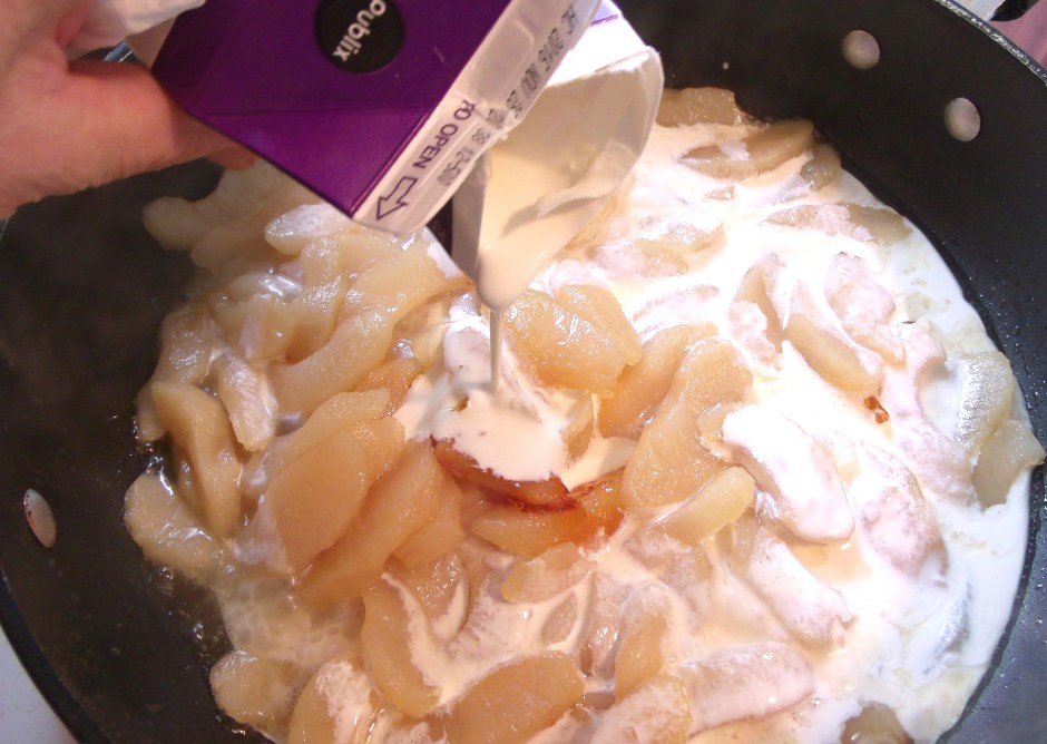 Caramelized Appe Cobbler With Twice Baked Chocolate Cookie Crumble ← Previous Next → saute apples with 1/4 cup sugar until lightly caramelized add 1/2 cup heavy cream