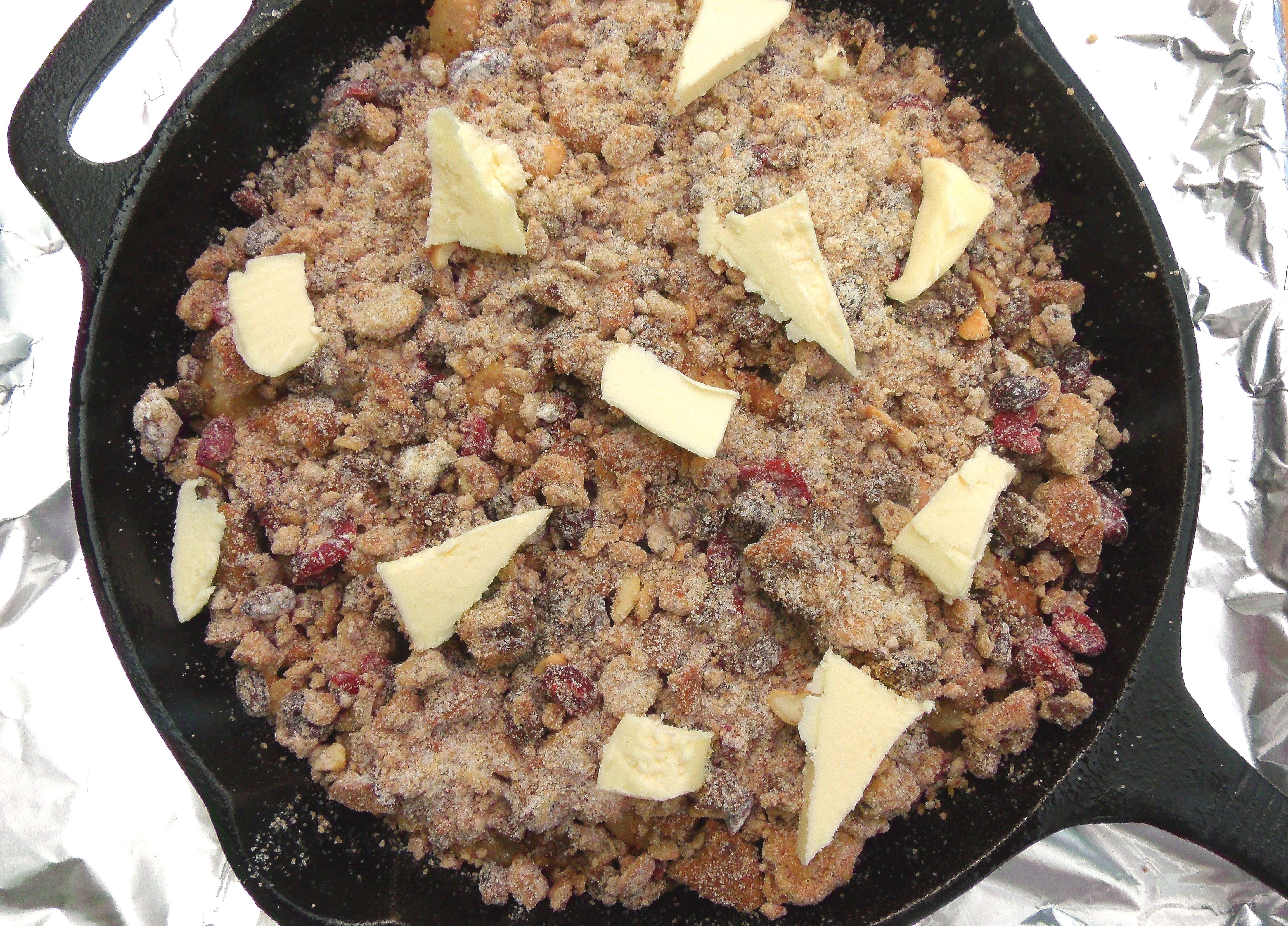 Caramelized Apple Cobbler With Twice Baked Chocolate Cookie Crumble ← Previous Next → cover with the remaining crumble, top with 8 oz butter flakes
