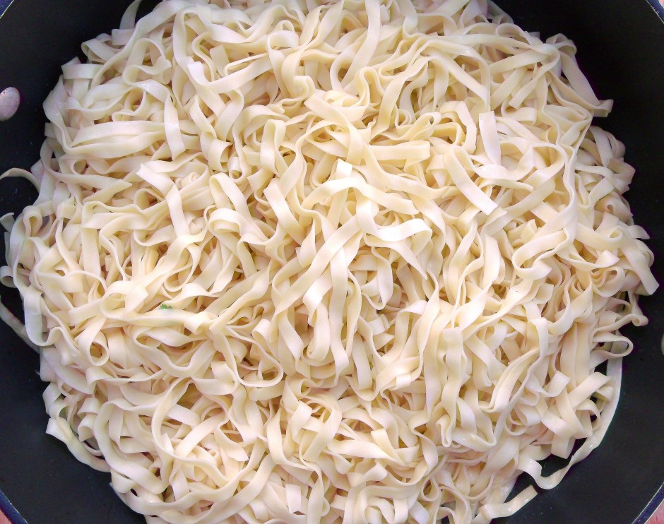 Crisp Chinese Noodle Pillow With Chile Pork Next → VERY slowly saute 0.5 lb yi mein noodles in 2 tblsp peanut oil without stirring until bottom is golden and crisp, turn, saute the other side until golden and crisp