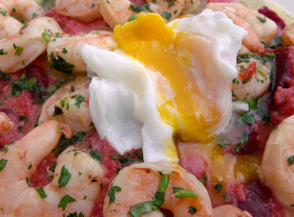 Red Beet Grits With Shrimp In Garlic/Herb Butter And Poached Egg ← Previous Next → Red Beet Grits With Shrimp In Garlic/Herb Butter And Poached Egg