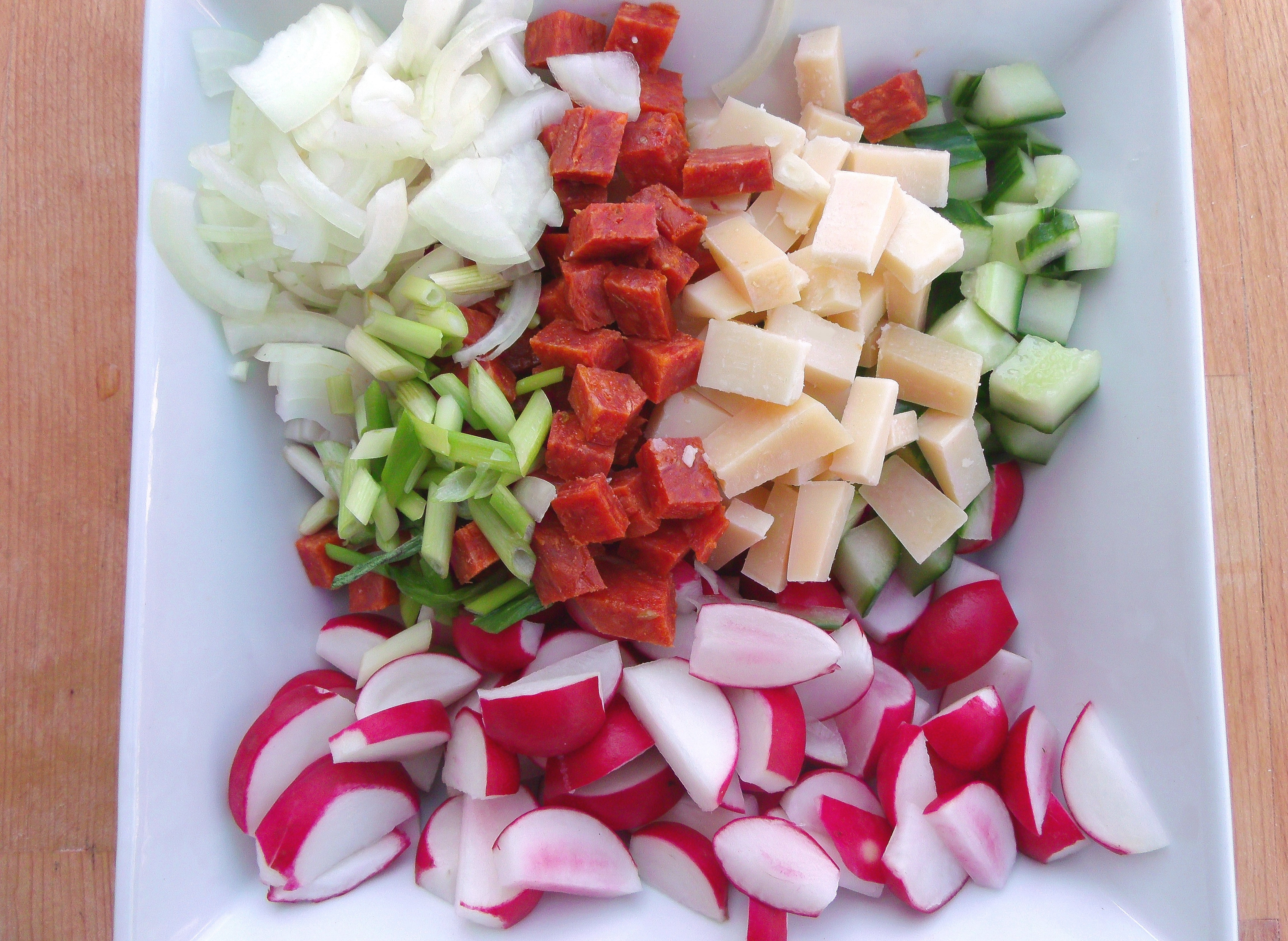 Hans.Panzanella Panino ← Previous Next → dice all ingredients, dress with EVO, red wine vinegar, kosher salt, garlic paste and fresh cracked black pepper