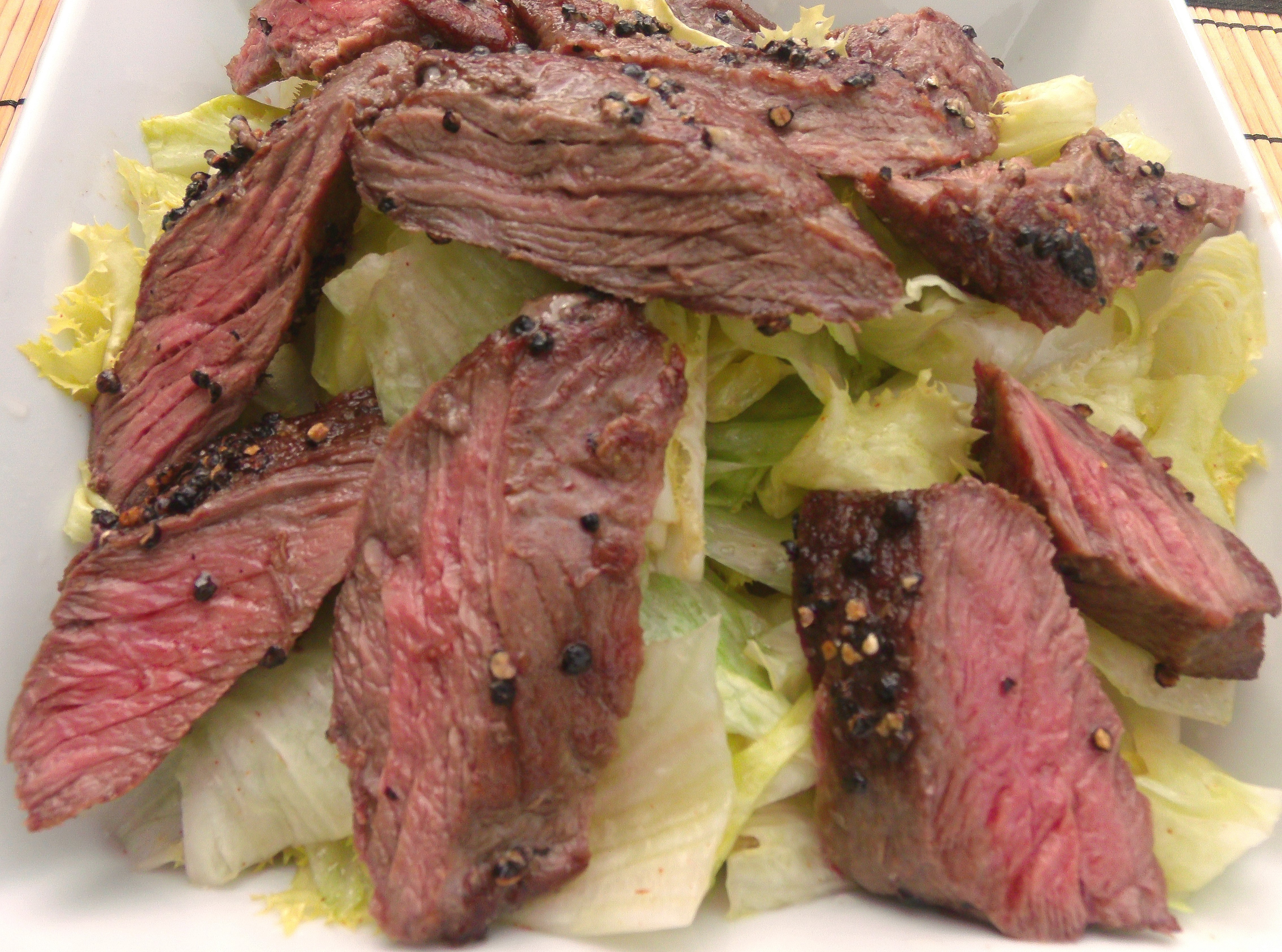 Steak Salad Recipe # 91 ← Previous Next → top with the sliced steak, then with the shiitake, garlic and scallions; serves 2 entrees, 4 snacks or 6 appetizers