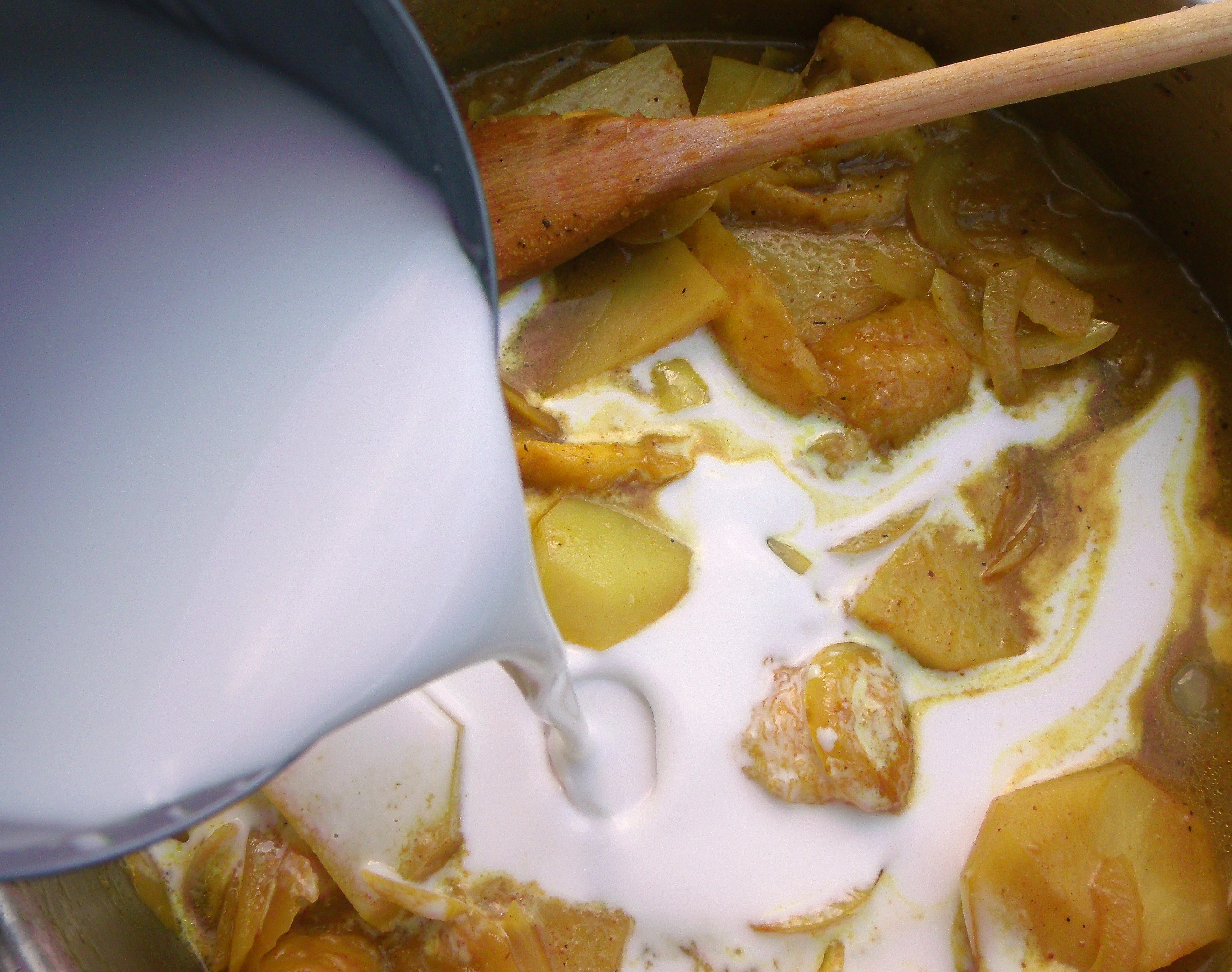 Curried Pumpkin, Potato And Coconut Soup ← Previous Next → add 8 oz coconut milk, simmer another 3 minutes