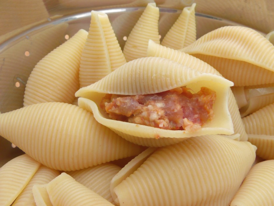 5 ← Previous Next → cook 1 lb large pasta shells until pliable, about 4 minutes ) “al dente” would be way too soft), stuff with the spicy sausage