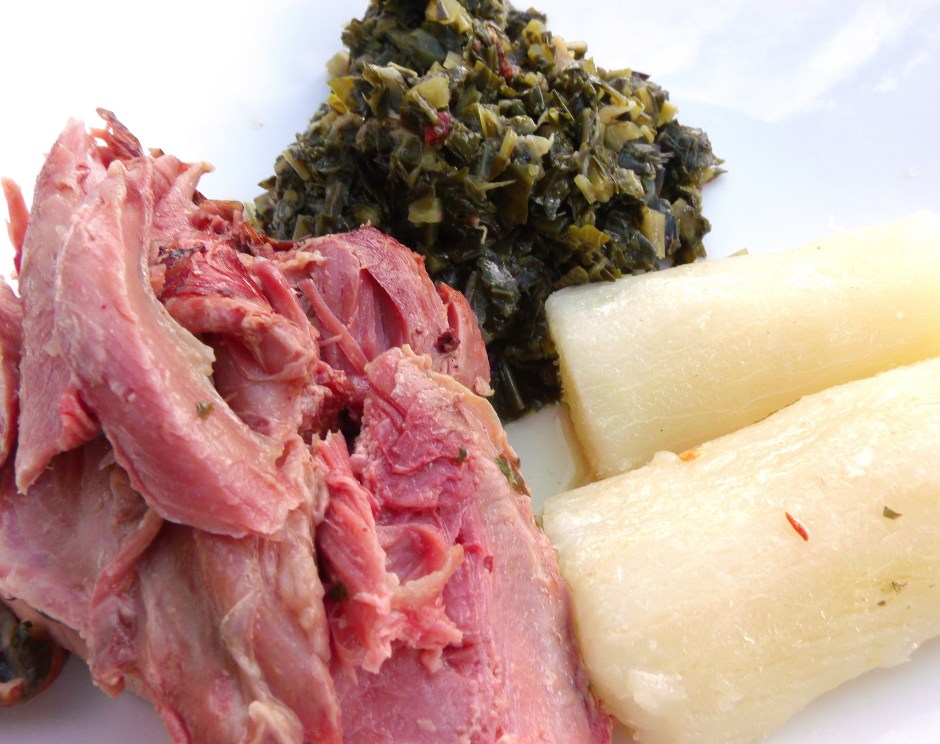 Smoked Turkey Leg With Collard Greens And Yuca In Mojo ← Previous Next → Smoked Turkey Leg With Collard Greens And Yuca In Mojo