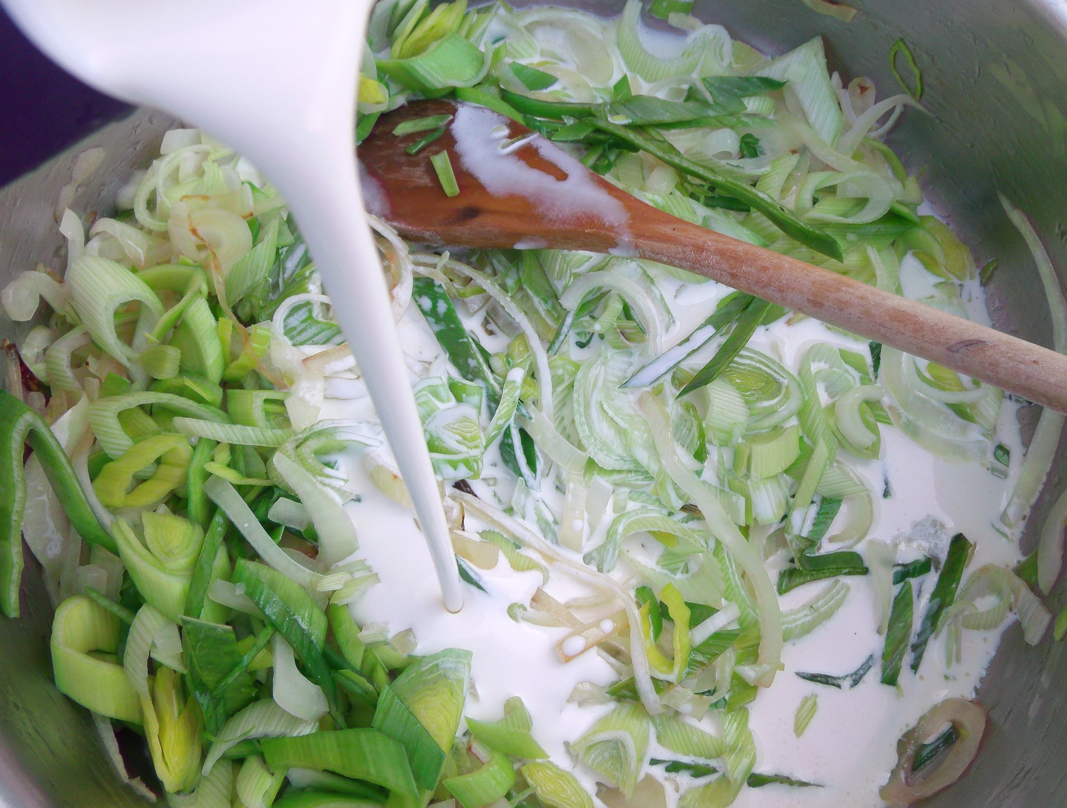 Gnocchi With Creamed Leeks And Grape Tomatoes ← Previous Next → add 2 cups of heavy cream, simmer until cream slightly thickens