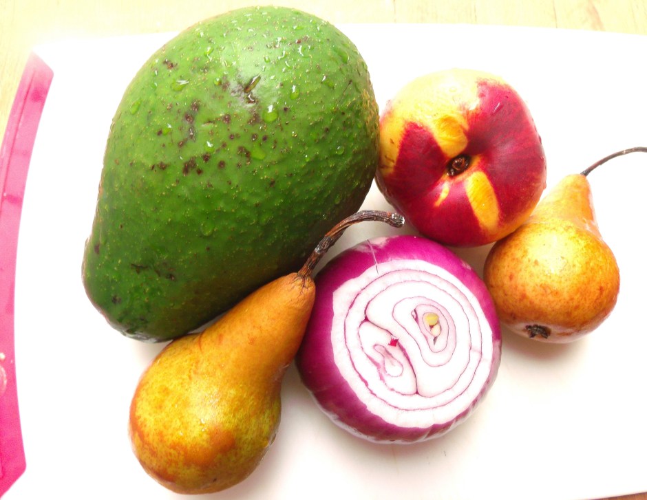 Salade Oscar ← Previous Next → 1 ea Florida avocado, 2 ea bosc pears, 1 ea nectarine, 1/2 ea red onion