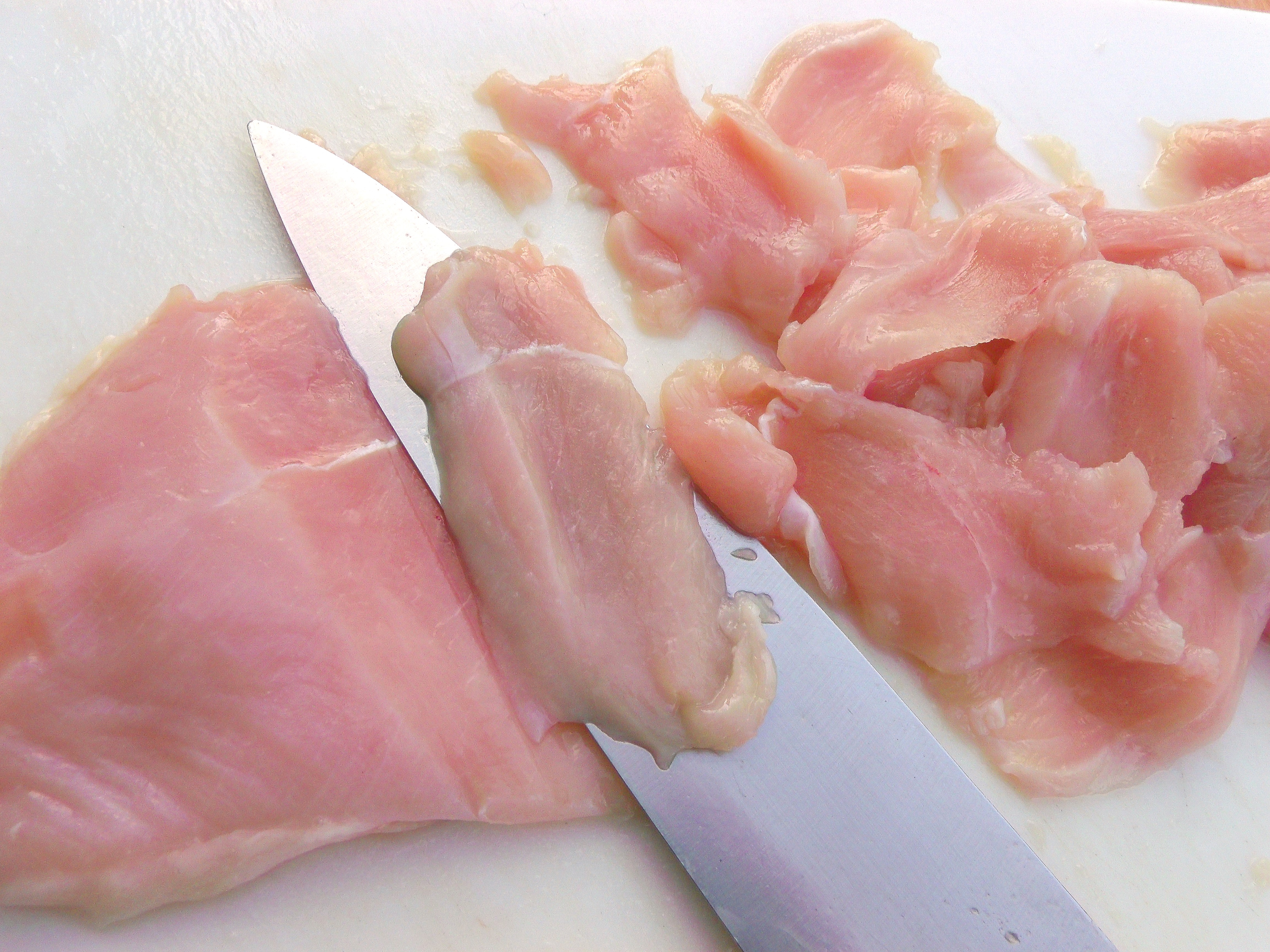 Flaming Hot Chili Chicken Noodle Bowl With Broccoli And Straw Mushrooms ← Previous Next → de-bone 4 large chicken breasts, remove skin, slice thin, dust with 2 tblsp riceflour, season with kosher salt and cayenne pepper to taste