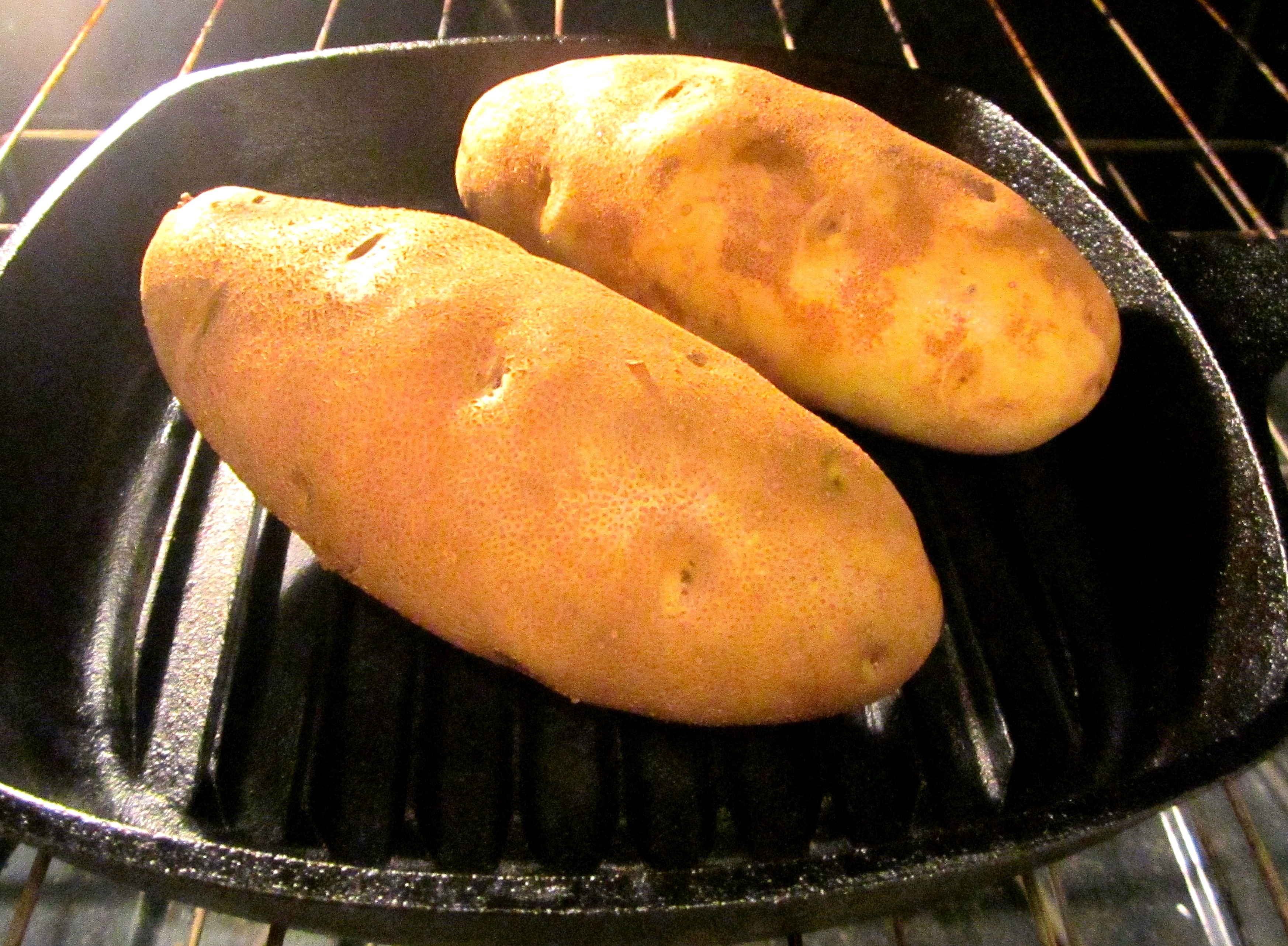 baked potato ← Previous Next → bake two washed baking potatoes at 400F until cooked through, about 50 minutes, depending on size