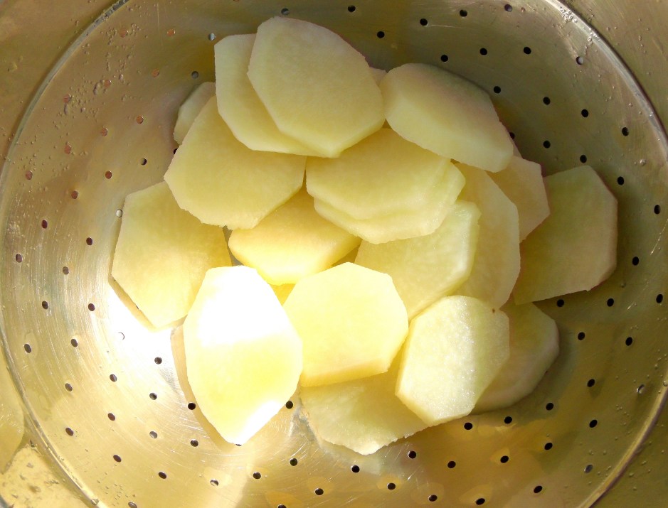 Bone-In Rib Eye With Sautéed Potatoes And Brussel Sprouts ← Previous Next → peel, cut into slices, blanch and drain 1/2 large potato per person