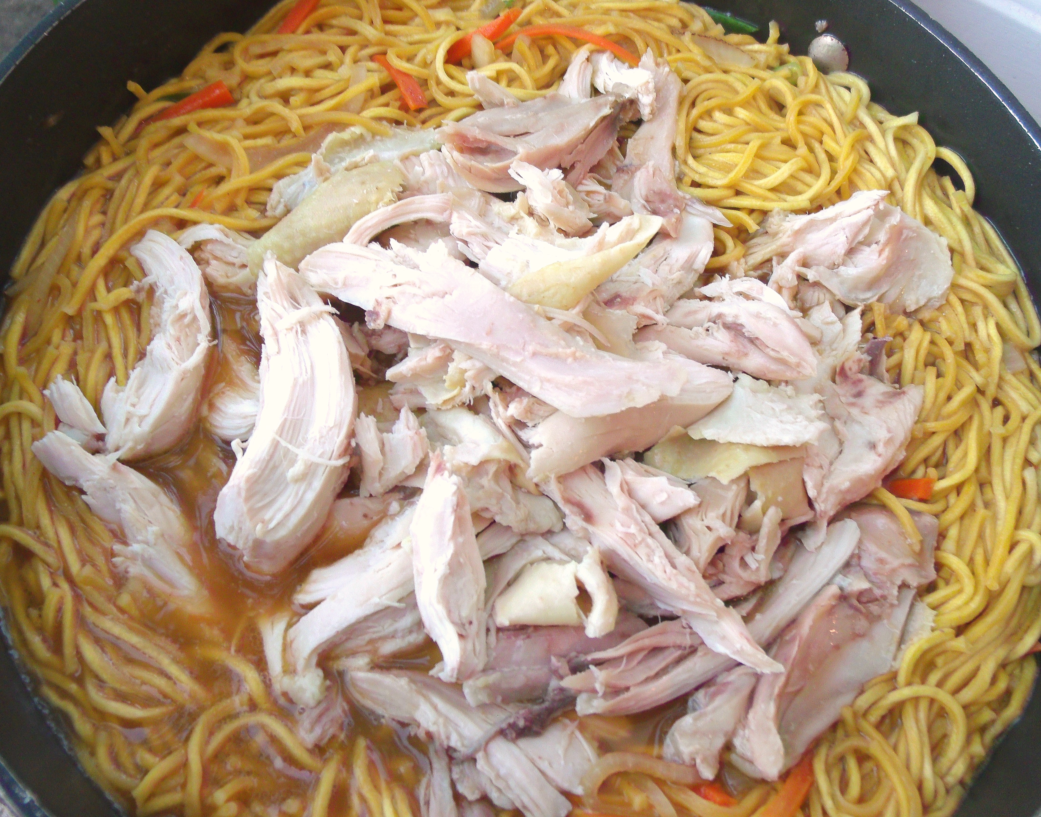Convenient Food (Pansit / Pancit) ← Previous Next → add the shredded chicken, simmer all until almost all stock has been absorbed by the noodles, about 3 to 5 minutes