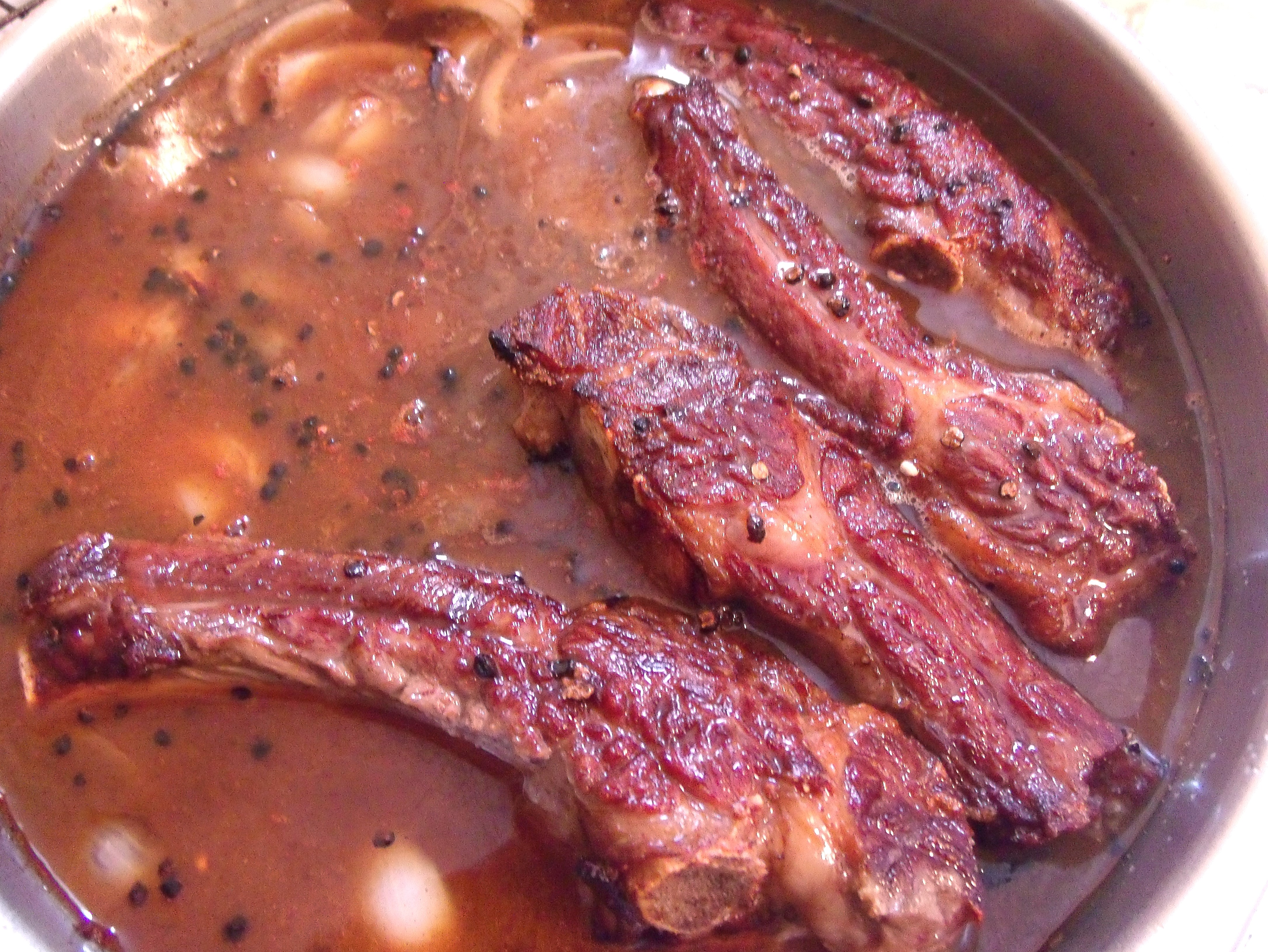 add 1 qt of beef stock and 2 cup apple cider, 2 tblsp sweet paprika, 2 tblsp tomato paste, 2 bay leaves, 1 tblsp dried thyme, 1 tsp garlic paste, kosher salt and cayenne pepper to taste, simmer covered until meat is very tender but NOT falling apart, about 2,3 to 3 hours