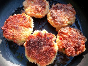 - mix all ingredients well, place in refrigerater for one hour in order to allow the panko to soak-up the moisture and soften