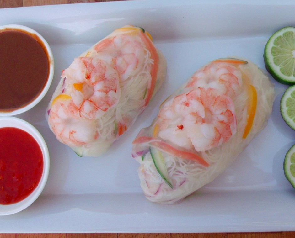 Shrimp And Rice Stick Pillows With Peanut Sauce And Sweet Chili Sauce