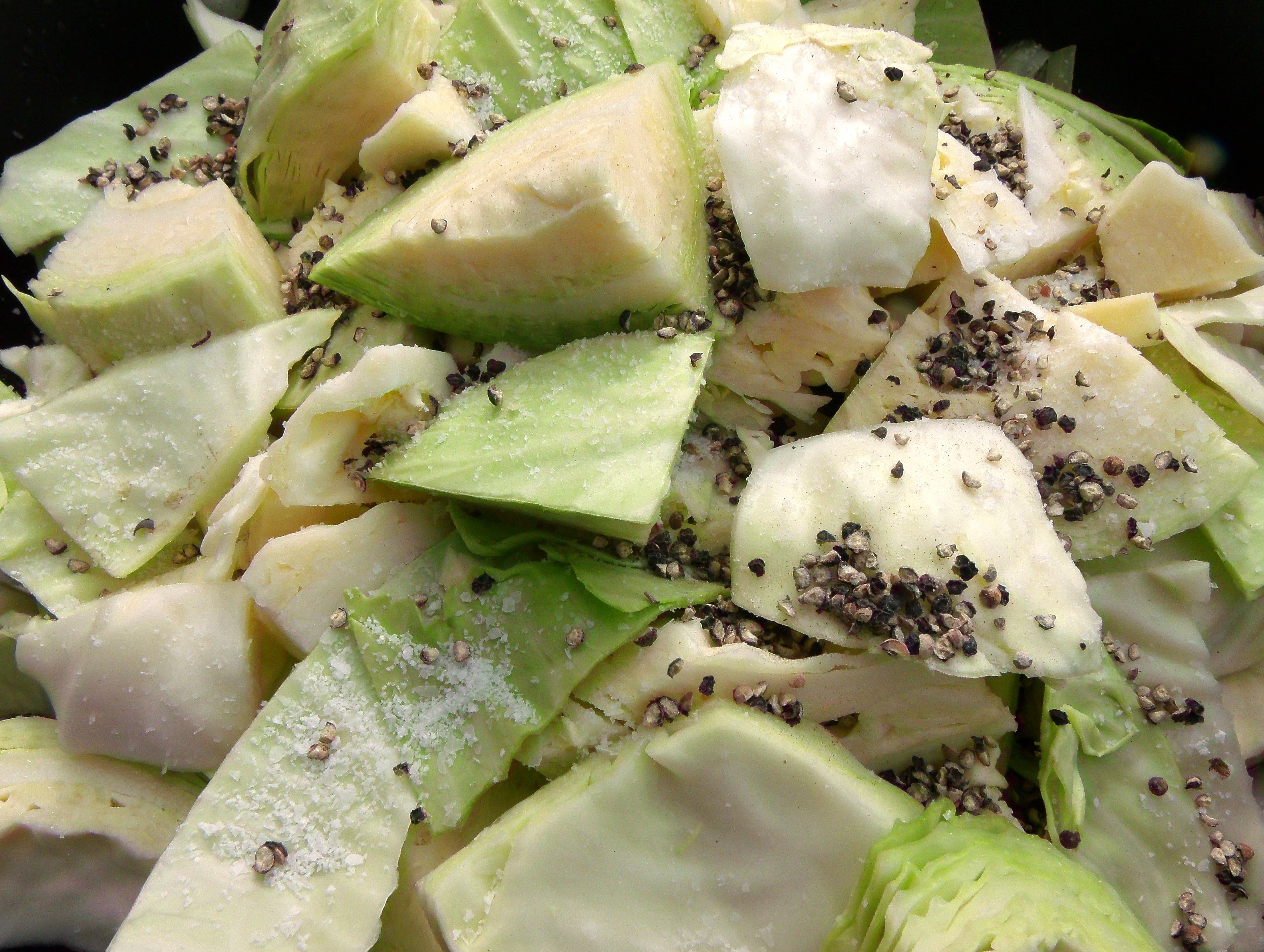 Falscher Hase (Fake Rabbit) (Meatloaf) ← Previous Next → add 2 lbs large diced white cabbage, season with kosher salt and fresh-cracked black pepper to taste