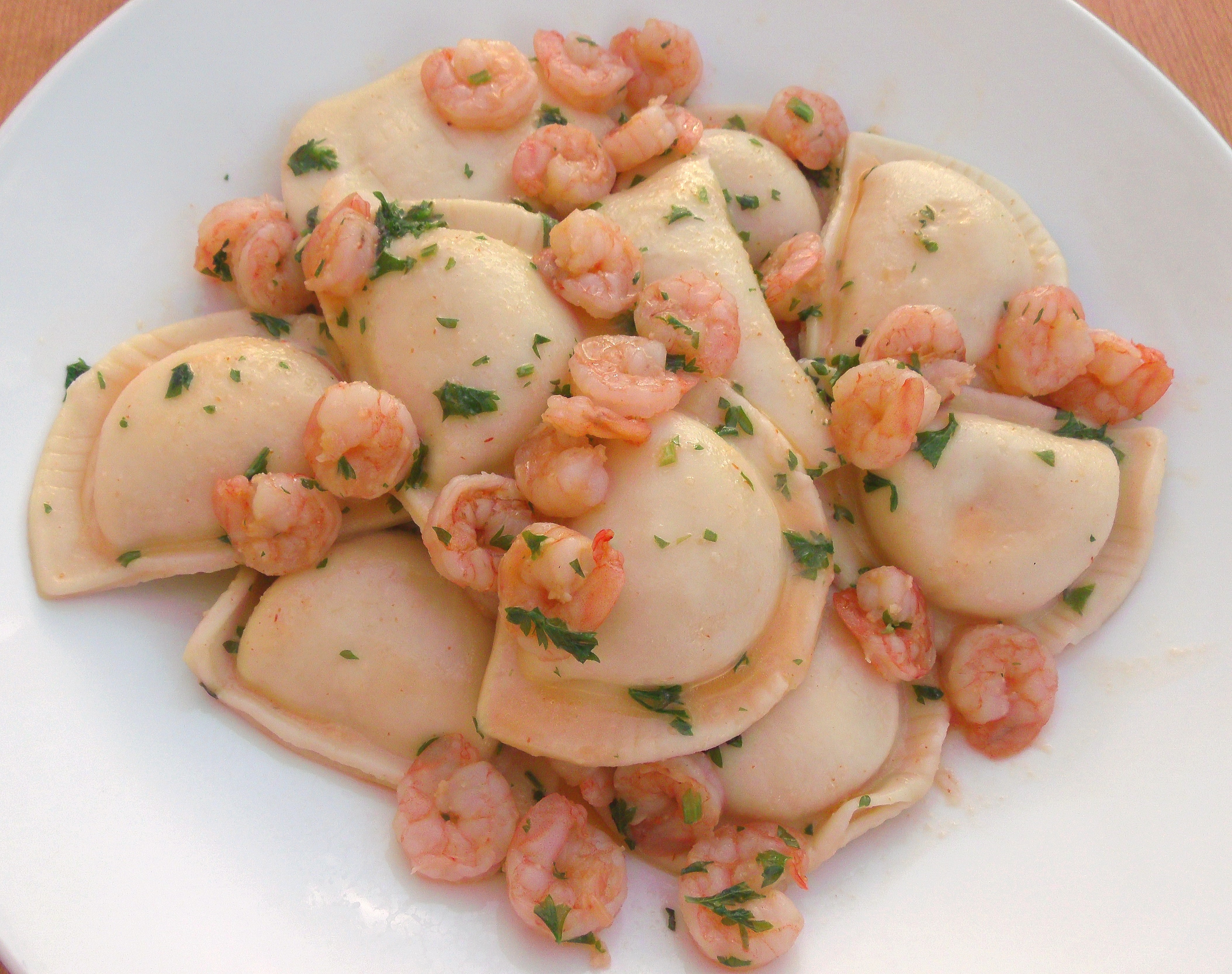 Shrimp And Ricotta Ravioli With Pangrattato ← Previous Next → plate ravioli and shrimp butter, top with pangrattato